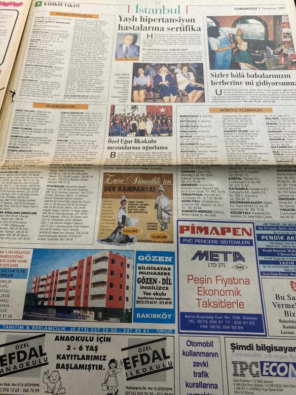 SABAH İSTANBUL GAZETESİ KADIKÖY YAKASI GAZETESİ - 5 Temmuz 1997 -erdal Bilallar-filiz Güler-ramazan Yazgan-şenol baştakar-eczaneler-önemli telefonlar-Film Sinemada İzlenir-As2000 yapı market-ergun hiçyılmaz-Selami Öztürk-Haydarpaşa Üniversitesi-gülümser Sayar-belediye başkanı Hasan akgün-Paul cafe nispetiye-Fahri Kuz Optik-Çepniler-akarsu Otel-Diltem-Zeytinburnu Belediyesi kadın hizmet birimi Sergisi-Asım Cenani-bülent zülfikar-orman mühendisleri odası başkanı Ertuğrul Acun-beğendik alışveriş-ikili takım-bıçak Sırtı-özel Uğur ilkokulu-Eftal anaokulu-İstanbul otomobil kulübü-Aykan Canberk-hipertansiyon-Garden koltuk-STAR duş-Büyükçekmece Şelale parkı-Aykut-Hakan-Ayşe-tankut Ökten-yataş adlı eser, Kitap > Süreli Yayınlar > Gazeteler > Türkiye > Genel > Günlük kategorisinde İkinci El olarak satıştadır.