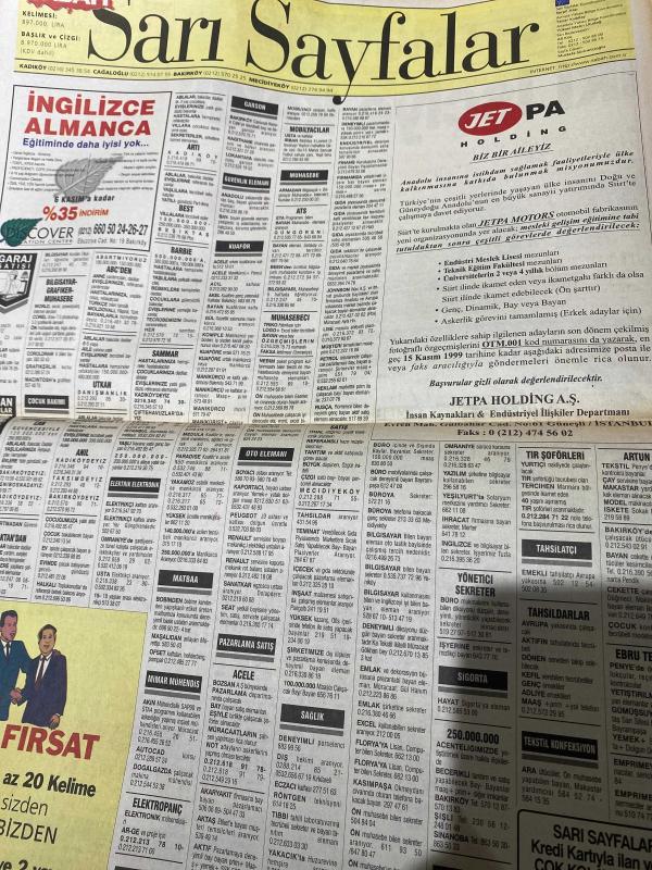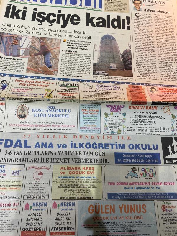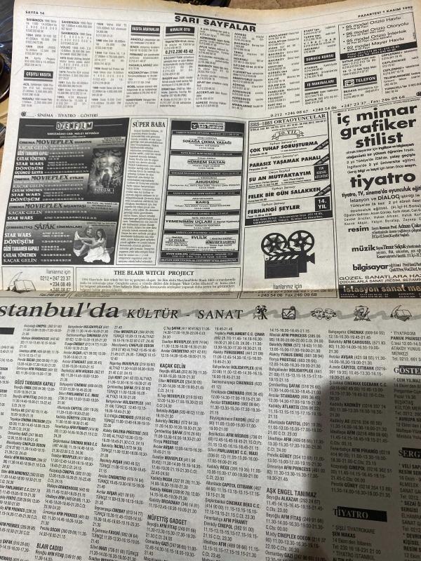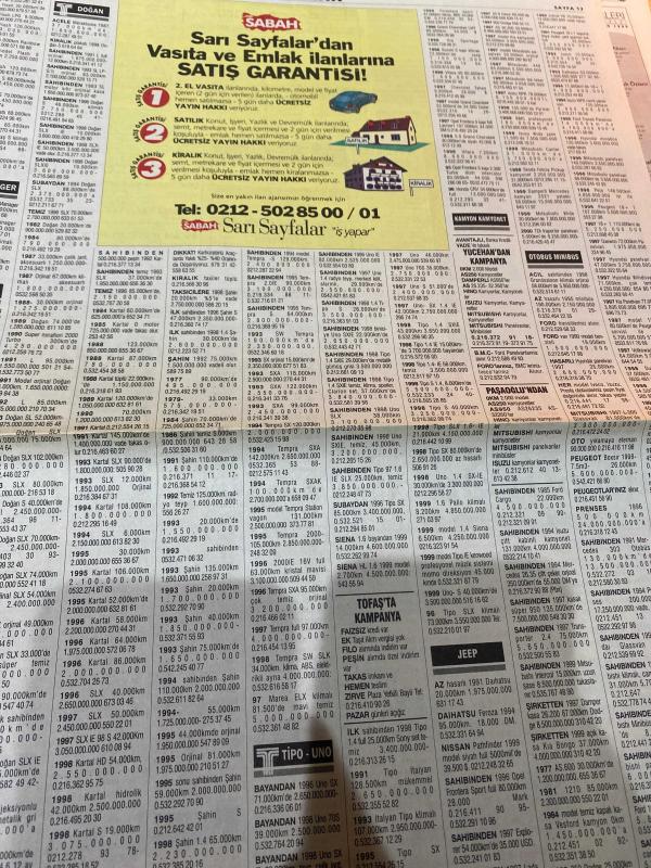 SABAH İSTANBUL GAZETESİ SABAH MELODİ GAZETESİ - 1 Kasım 1999 - Erdal Bilallar-Eczaneler-Güzellik Rehberi-Sağlık Rehberi-Sabah Sarı Sayfalar-Şenol Baştakar-İstanbulluların dert köşesi-İstanbul’da Kültür Sanat-Erdal Çetin-Bahçelievler Sağırlar Spor Kulübü Başkanı Tamer Urel-Baymak-İstanbul milletvekili Aydın Ayaydın-Winsa-Megapen-Uğur Doğrugüven-Galata Kulesi-Erdal Çetin-kırmızı balık bebek-Efdal-Alibaba kreş ve çocuk evi-Gülen yunus çocuk evi-Yeni levent çocuk kulübü-Jetpa holding-Levent kırca-Oya Başar-Sen hiç ateşböceği gördün mü-üç baba hasan müzikli Oyun-Cem yılmaz-Muazzez abacı-Şebnem ferah-Teoman-Mehmet Ali Erbil-Uğur Yücel-Yaşar-7 kocalı hürmüz-Nurten Yeşilyurt-Nilgün Aslan-Yusuf Kum-Yahya Kurt-Ahmet Çetinsaya-Remzi Erbaş-Yavuz asdemir-Erikli su adlı eser, Kitap > Süreli Yayınlar > Gazeteler > Türkiye > Genel > Günlük kategorisinde İkinci El olarak satıştadır.