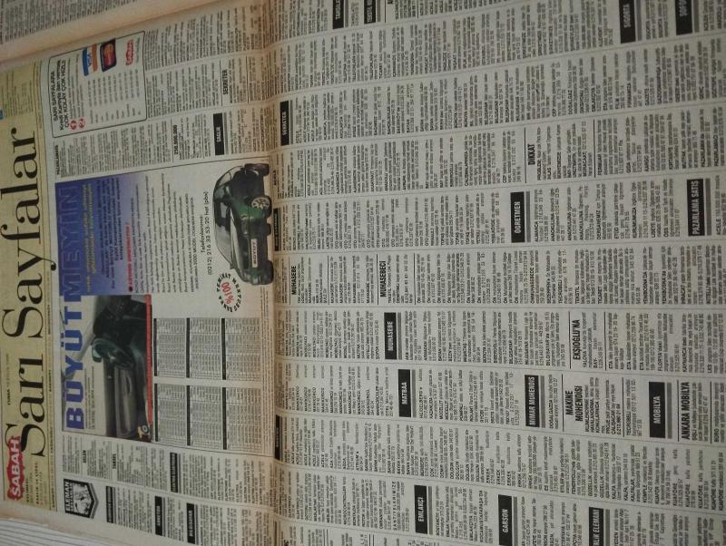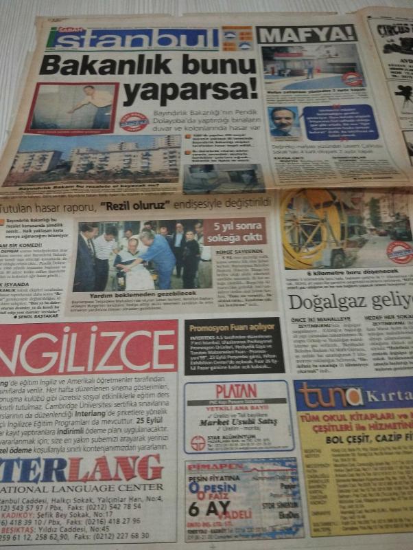 SABAH İSTANBUL GAZETESİ SABAH MELODİ GAZETESİ - 10 EYLÜL 1999 - Erdal Bilallar-Eczaneler-Güzellik Rehberi-Sağlık Rehberi-Sabah Sarı Sayfalar-Şenol Baştakar- mafya- yusuf mumoğlu-yavuz Hasdemir- pendik kısaca pimapen-tuna Kırtasiye- basit bir plan-seramik dersi verilir- kekemelik düzeltme programı-spikerlik ve sunuculuk- aşkım için- özel ilgi- mutfak-onur akşam lisesi-pendik akşam lisesi-her şey daha güzel olacak-maltepe-sarıyer-eyüp- yusuf parmak-tango-kaçak gelin- julia Roberts- Richard Gere- the Matrix- sun City-sevim Akbaş- pis kokular-baymak-şan taylan-recep Aslan- zeynep mutlu Eğitim vakfı-kemer Koleji- adlı eser, Kitap > Süreli Yayınlar > Gazeteler > Türkiye > Genel > Günlük kategorisinde İkinci El olarak satıştadır.
