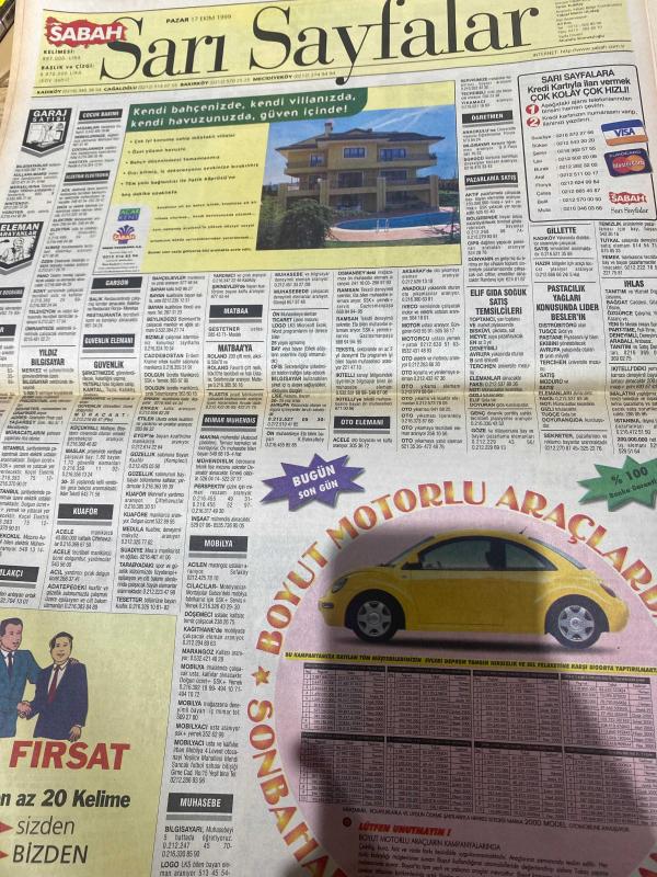 SABAH İSTANBUL GAZETESİ SABAH MELODİ GAZETESİ - 17 EKİM 1999 - Erdal Bilallar-Eczaneler-Güzellik Rehberi-Sağlık Rehberi-Sabah Sarı Sayfalar-Şenol Baştakar-İstanbulluların dert köşesi-İstanbul’da Kültür Sanat-cem yılmaz bir tat bir doku-1885 ses ortaoyuncular tiyatrosu-Notting hill-Ferhan Şensoy-sinema dergisi-üç baba hasan-güzel ve çirkin-levent kırca-Oya başar-Yavuz Asdemir-Ramazan Yazgan-İdris güllüce-Süleyman demirel-Nevriye Oral-Butikçi Şaziye-Bahçelievler belediye başkanı saffet bulut-Sezai Büyükdurmuş-Beşiktaş yeni levent-Avcılar parseller-Mecidiyeköy-Şişli feriköy-Atilla dorsay-İTO Başkanı Mehmet yıldırım-Kapalıçarşı esnaflar odası başkanı Faruk Darende-pendik köşkleri-Hıncal Uluç-Ruhat Mengi-Banvit-Tansaş-Terazi market-Masko mobilya-Savaş Saka-Naciye okumuş-Yorgos Papandreu-Ali Müfit Gürtuna adlı eser, Kitap > Süreli Yayınlar > Gazeteler > Türkiye > Genel > Günlük kategorisinde İkinci El olarak satıştadır.