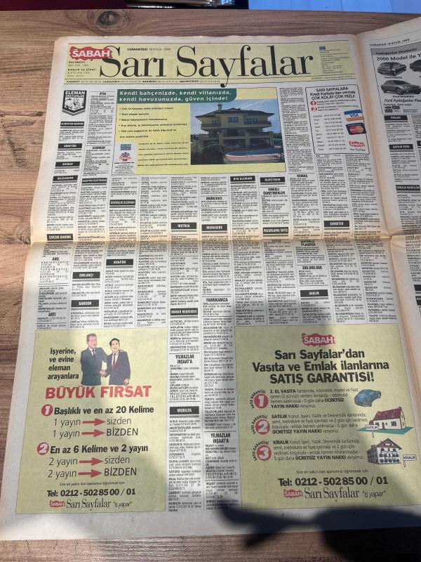 SABAH İSTANBUL GAZETESİ SABAH MELODİ GAZETESİ - 18 EYLÜL 1999 - Erdal Bilallar-Eczaneler-Güzellik Rehberi-Sağlık Rehberi-Sabah Sarı Sayfalar-Şenol Baştakar-İstanbulluların dert köşesi-İstanbul’da Kültür Sanat-CİF GİŞELERİ temizliyor - güzel sanatlar lisesi öğrencileri - anlamlı afişler - yüzlerce öğrenci erenköyden ataşehire göç ettiriliyor - engin akbaş - önce tren sonra deprem - küçük Ayasofya- kavaklı - Beykoz - Şişli - karayolları dökülüyor - balıkçı adil kebapçı - kumkapı - yeşilköy kavşağı - başkan bahtiyar uyanık - yenisahranın otogara dönüşmesi - Eminönü- lütfi kibiroğlu- haramiler - rahibe şefkati- ayla Özcan - kodesto çatlak yok - nato genel sekreter yardımcısı avcıları gezdi - suadiyenin sahili adlı eser, Kitap > Süreli Yayınlar > Gazeteler > Türkiye > Genel > Günlük kategorisinde İkinci El olarak satıştadır.