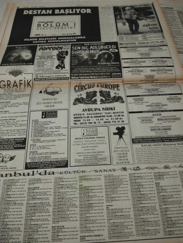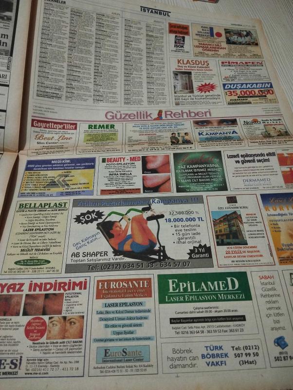 SABAH İSTANBUL GAZETESİ SABAH MELODİ GAZETESİ - 22 Eylül 1999 - Erdal Bilallar-Eczaneler-Güzellik Rehberi-Sağlık Rehberi-Sabah Sarı Sayfalar-Şenol Baştakar- zam mahkemelik- Emin koç-işte zamcı bakan- Topkapı Sarayı- Küçükçekmece- şaka İstanbul haber- wolf-baymak- istanbul-kadıköy-maltepe-şişli- süper sat-pimapen- feyzullah İlköğretim Okulu- erdal Çetin- ahmet özden-aydın bostancı-kamil yılmaz-burçin büyüklük-hasan Ali dağlı-süleyman Kalaycı- boyut motorlu araçlar- destan başlıyor-popcorn-sen Hiç Ateş Böceği Gördün mü-bkm oyuncuları-yılmaz erdoğan-demet akbağ-pera-Avrupa sirki- Kaçak Gelin- belgi Paksoy--bonmed-remer-eurosante-özel batı dilleri merkezi- Zafer sarıca-merih serin-ibrahim akbaş-nihat Topal- engin Akbaş- yavuz asdemir- gök dil-opti mone adlı eser, Kitap > Süreli Yayınlar > Gazeteler > Türkiye > Genel > Günlük kategorisinde İkinci El olarak satıştadır.
