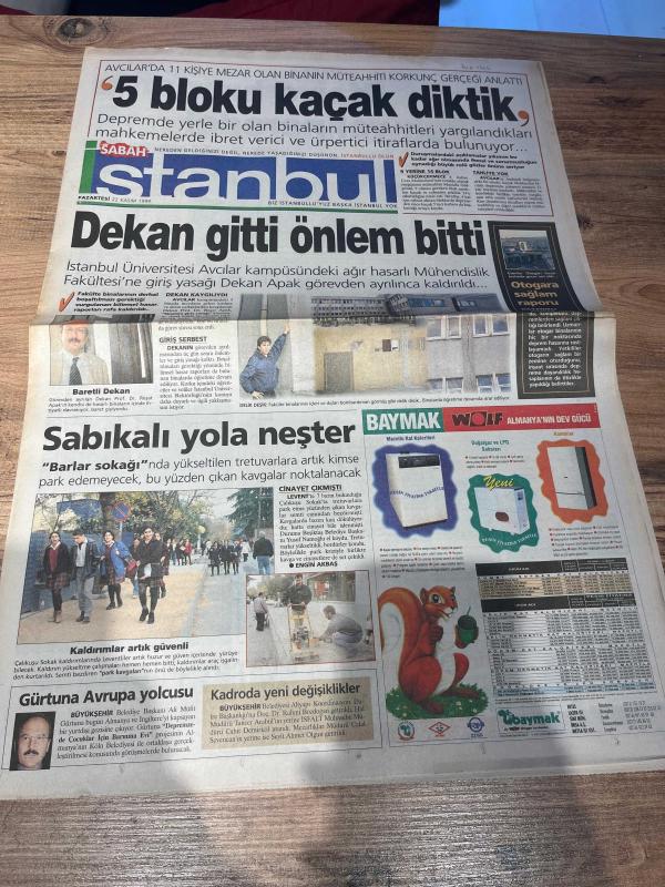 SABAH İSTANBUL GAZETESİ SABAH MELODİ GAZETESİ - 22 KASIM 1999 - Erdal Bilallar-Eczaneler-Güzellik Rehberi-Sağlık Rehberi-Sabah Sarı Sayfalar-Şenol Baştakar-İstanbulluların dert köşesi-İstanbul’da Kültür Sanat-İstanbul üniversitesi Avcılar kampüsü- otogara sağlam raporu - barlar sokağı - gürtuna Avrupa yolcusu - engin akbaş - dekan apak - Sabri yalın -itü mezunlarını arıyor - arı evi başkanı emin karakaya - tango dersleri - akmerkez de robotlar var - kğçükbakkalköy- Kadıköy - tuncer yeşilyurt - remzi Orhan - Mustafa Yakut - vefa ormanı - Cem Yılmaz - notting hill- Ortaköy - memolinin istanbulu - sanat galerisi - çocuk hakları okulu - lodosun kirli mirası - haliçteki sığınak adlı eser, Kitap > Süreli Yayınlar > Gazeteler > Türkiye > Genel > Günlük kategorisinde İkinci El olarak satıştadır.