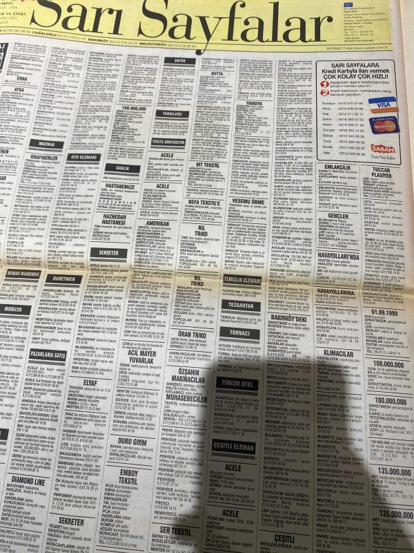 SABAH İSTANBUL GAZETESİ SABAH MELODİ GAZETESİ - 30 Ağustos 1999 - Erdal Bilallar-Eczaneler-Güzellik Rehberi-Sağlık Rehberi-Sabah Sarı Sayfalar-Şenol Baştakar-İstanbulluların dert köşesi-İstanbul’da Kültür Sanat-İstanbul valisi erol çakır-Ömer Balıbey-Recep Koral-Aziz İnci-Samet Çelik-Erdal Çetin-Baymak-Engin Akbaş-Altunizade çocuk merkezi-Minik kalpler anaokulu-Oembe düşler çocuk evi-Fonı koleji ve ana sınıfı-Erka yapı ve otomasyon-Winsa-Adopen-Gülşen Küsbeoğlu-Zafer Şengezer-Şükrü Ölmez-Mehmet Hacıoğlu-Rıza Ağaç-İzzet Türk-Atatürkçü düşünce dermeği-Talip Zorlu-Ulusal motorlu araçlar-Sinema dergisi-Four Days In September-Mumya-Virüs-Prestij Kontakt Lens-Avantaj pazarlama-Aytaç Şahiner-Ahmet Birinci-Şahin Çapcı-Engin Akbaş adlı eser, Kitap > Süreli Yayınlar > Gazeteler > Türkiye > Genel > Günlük kategorisinde İkinci El olarak satıştadır.
