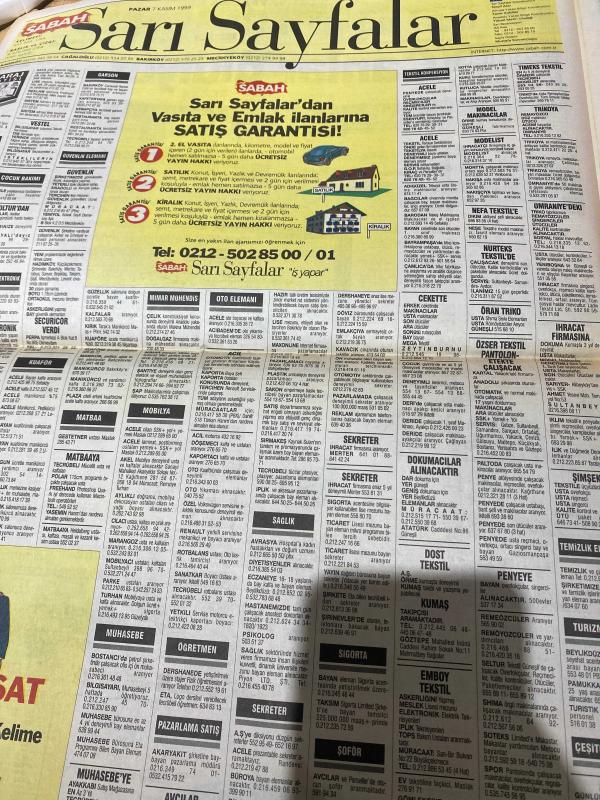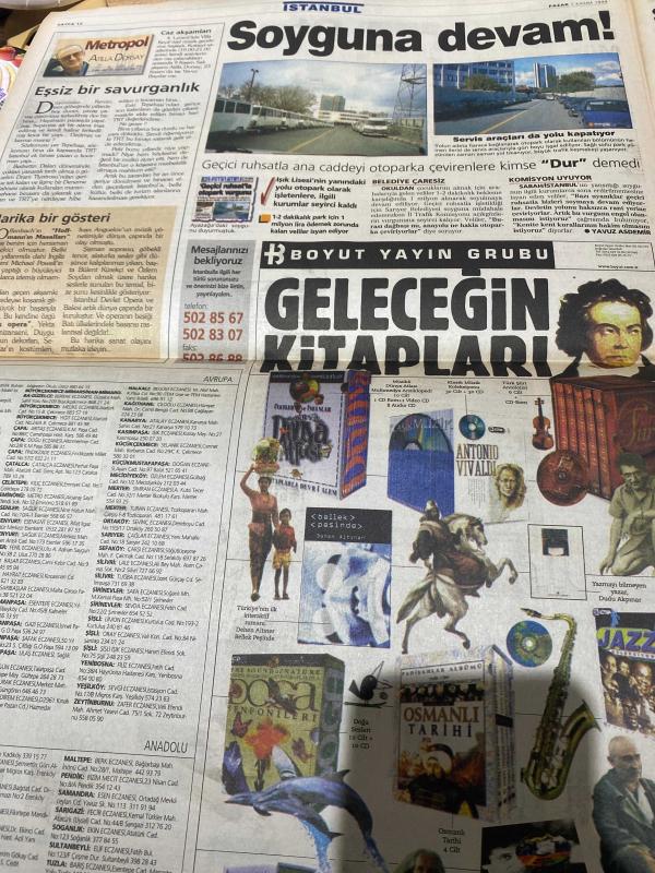 SABAH İSTANBUL GAZETESİ SABAH MELODİ GAZETESİ - 7 Kasım 1999 - Erdal Bilallar-Eczaneler-Güzellik Rehberi-Sağlık Rehberi-Sabah Sarı Sayfalar-Şenol Baştakar-İstanbulluların dert köşesi-İstanbul’da Kültür Sanat-Müfit gürtuna-Bülent ergün-AGİT-Swissotel-Tansaş Levent-Kiler tekstil-Erdal Çetin-Kağıthane gürsel mahallesi-Modoko mobilya-DMO göztepe deposunda-Boyut yayın grubu-MNG Bank-Boyut ev sineması-Sadberk Hanım Müzesi-Kartal eğitim ve araştırma hastanesi-Başhekim Necmi Kurt-Topkapı sarayı-Masko mobilya center-Sadık Şendil-Engin akbaş-Merve coşkun-İkiler tekstil-Swissotel- adlı eser, Kitap > Süreli Yayınlar > Gazeteler > Türkiye > Genel > Günlük kategorisinde İkinci El olarak satıştadır.