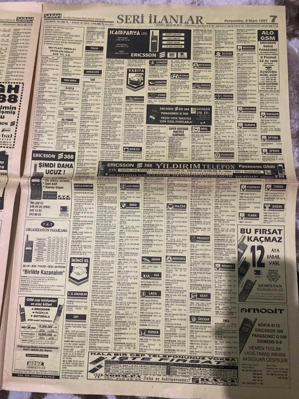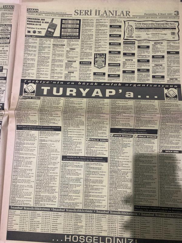 SABAH İSTANBUL ÖZEL SERİ İLAN SARI SAYFALAR DOĞUM GÜNÜ GAZETESİ - 6 MART 1997 - Boğaziçi İngilizce kuşları-başlangıç orta ileri çeviri KPDS TOEFL-Eleman arayanlar-emlakçı-garson-pazarlama- sarı sayfalara kredi kartıyla ilan vermek çok kolay çok hızlı-tecrübeli muhasebe şefi-Fransızca bilen-esen tekstil-planlamacı-tezgahtar-tornacı-turizm otel-Ntek bilgisayar-teknik servis elemanı-boya baskı-nakış takipçileri-baskı nakış takibi Sorumlusu-Tornacılar ve Puntacı elemanlar-aşçıbaşı usta ve yardımcıları- satış temsilcileri-güvenlik elemanları-Kaynakçılar-Fatih telefon-en iyi fiyata en iyi cep telefonu-çağrı-en iyi cep telefonu şok fiyatlara-Yılmaz-İhraç fazlası satışları-Özel bilSof-sarı sayfalarda bu ilanı sütün santimi sadece 10 $-emekliler-Şile‘de ayrıcalıklı bir yaşam-sahibinden satılık dükkan ve işyerleri-yatırımcılar-Tesan-Çatalca kabakça köyü nde-Yeşilköyde-sahibinden satılık daireler ve arsalar-mimar Sinan-sorunsuz iletişim için doğru adres-arayın görüşelim-çağı telekom-kiralık e adlı eser, Kitap > Süreli Yayınlar > Gazeteler > Türkiye > Genel > Günlük kategorisinde İkinci El olarak satıştadır.