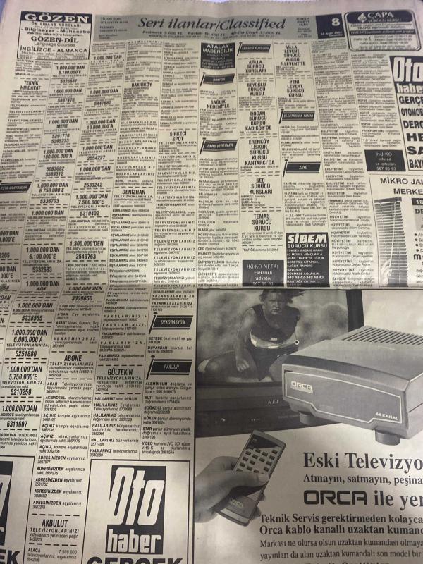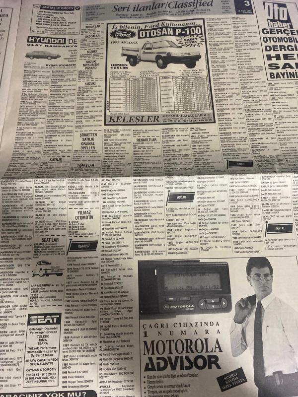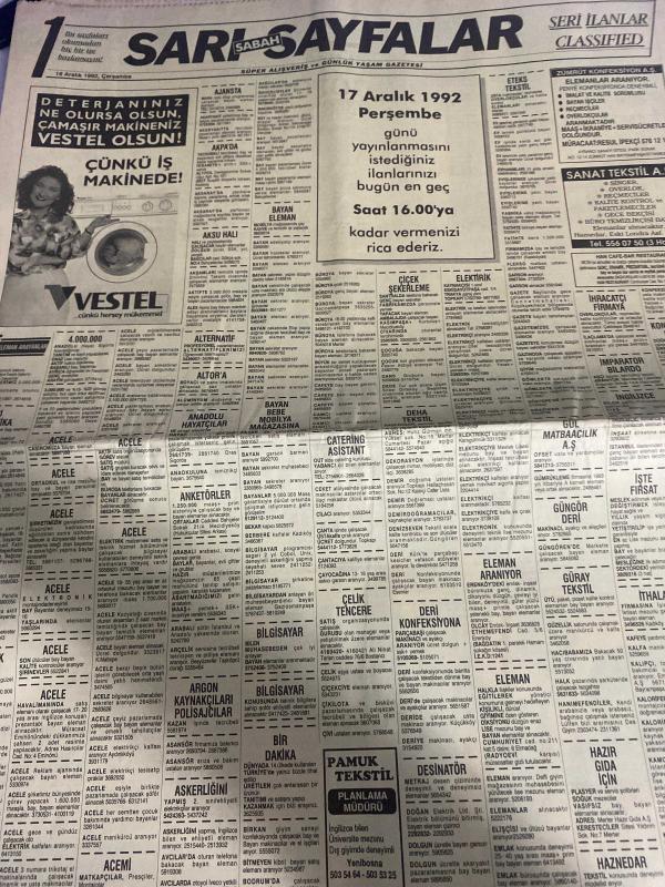 SABAH İSTANBUL ÖZEL SERİ SARI SAYFALAR GAZETESİ - 16 Aralık 1992 - sigorta-garson-mobilya-kuaför-Çocuk bakım-emlakçı-sağlık-tahsilatçı-şoför-temizlik elemanı-tezgahtar-tornacı-kasap-pastane-muhasebe-Beşiktaş-Beykoz-Alibeyköy-Bağcılar-Bakırköy-Gayrettepe-laleli-Levent-Gaziosmanpaşa-Fatih-Beşiktaş-Fındıkzade-Küçükçekmece-Ortaköy-Florya-Fulya- Üsküdar-Göztepe-Bağlarbaşı-Ataşehir-Yalova-Tuzla-Avcılar-Ulus-Merter-Anadoluhisarı-Tarabya-Sefaköy-yakacık-Suadiye-moda-kazasker-Maltepe-Kartal-Kalamış-Kadıköy-bostancı-akatlar Mecidiyeköy-Kocamustafapaşa-Çamlıca-Koşuyolu-Pendik-Kozyatağı-Ford-Mercedes-Citroen-BMW-Mazda-Kartal-Renault-Opel-Nissan-Mitsubishi-Kartal-Tempra-Doğan-Şahin-Murat-Vestel Tire sanat Tekstil-Zümrüt konfeksiyon-Pamuk Tekstil-Keleşler motorlu araçlar-Özcihan plastik-akabe otomotiv-Ercan otomotiv-Keleşler motorlu araçlar-Bülent pazarlama-Bahadır inşaat-Pamukbank-autohaber-incom bilgisayar-gül petrol çapa sürücü kursu-gözen önlisans kursları adlı eser, Kitap > Süreli Yayınlar > Gazeteler > Türkiye > Genel > Günlük kategorisinde İkinci El olarak satıştadır.