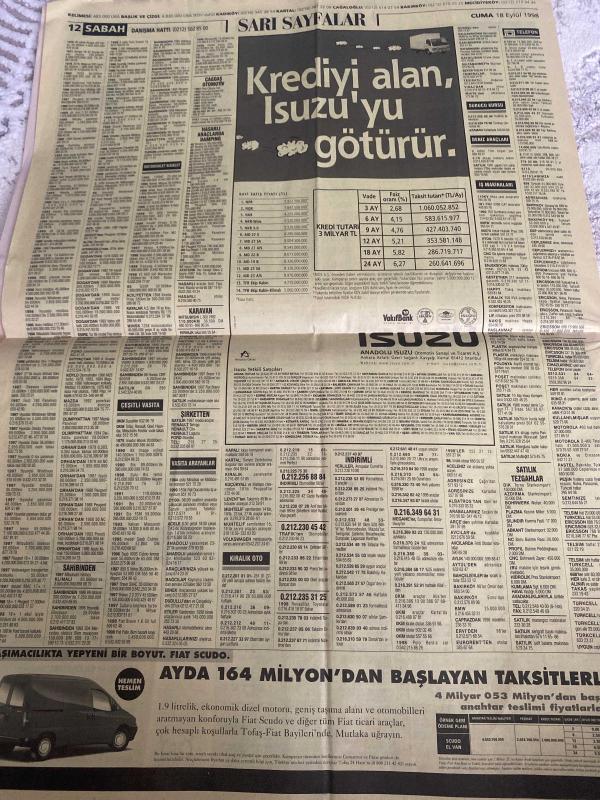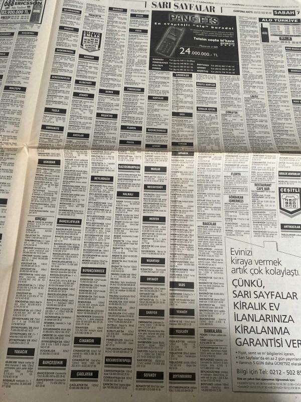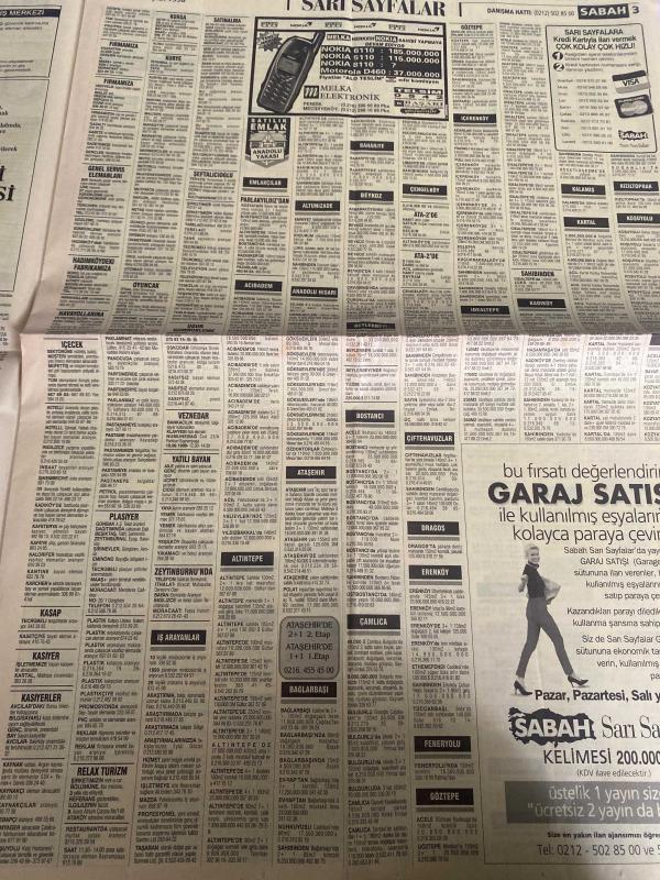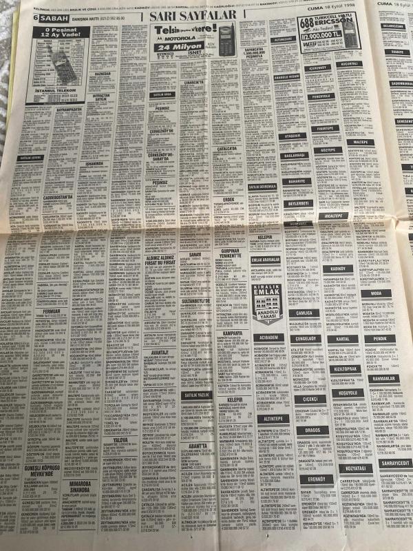 SABAH İSTANBUL ÖZEL SERİ SARI SAYFALAR GAZETESİ - 18 Eylül 1998 - sigorta-garson-mobilya-kuaför-Çocuk bakım-emlakçı-sağlık-tahsilatçı-şoför-temizlik elemanı-tezgahtar-tornacı-kasap-pastane-muhasebe-Beşiktaş-Beykoz-Alibeyköy-Bağcılar-Bakırköy-Gayrettepe-laleli-Levent-Gaziosmanpaşa-Fatih-Beşiktaş-Fındıkzade-Küçükçekmece-Ortaköy-Florya-Fulya- Üsküdar-Göztepe-Bağlarbaşı-Ataşehir-Yalova-Tuzla-Avcılar-Ulus-Merter-Anadoluhisarı-Tarabya-Sefaköy-yakacık-Suadiye-moda-kazasker-Maltepe-Kartal-Kalamış-Kadıköy-bostancı-akatlar Mecidiyeköy-Kocamustafapaşa-Çamlıca-Koşuyolu-Pendik-Kozyatağı-Ford-Mercedes-Citroen-BMW-Mazda-Kartal-Renault-Opel-Nissan-Mitsubishi-Kartal-Tempra-Doğan-Şahin-Murat-boyut otomotiv-newlıne business school-Dilko english-melka elektronik-Aymaksan aş-naz örme-Maslak plaza iş merkezi-kabash telekom-telecenter-İstanbul telekom-west telekom-panofis-zerrin otomotiv-Anadolu grubu adlı eser, Kitap > Süreli Yayınlar > Gazeteler > Türkiye > Genel > Günlük kategorisinde İkinci El olarak satıştadır.