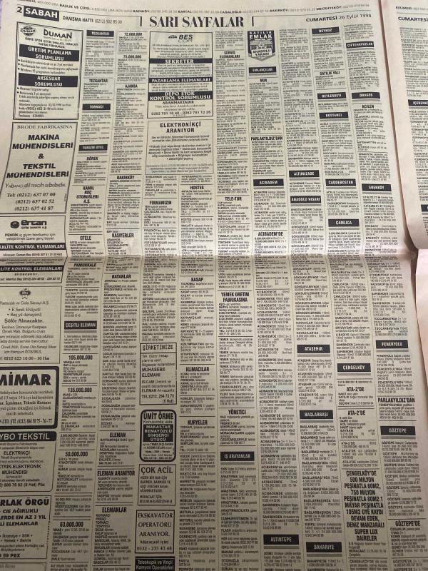 SABAH İSTANBUL ÖZEL SERİ SARI SAYFALAR GAZETESİ - 26 Eylül 1998 - sigorta-garson-mobilya-kuaför-Çocuk bakım-emlakçı-sağlık-tahsilatçı-şoför-temizlik elemanı-tezgahtar-tornacı-kasap-pastane-muhasebe-Beşiktaş-Beykoz-Alibeyköy-Bağcılar-Bakırköy-Gayrettepe-laleli-Levent-Gaziosmanpaşa-Fatih-Beşiktaş-Fındıkzade-Küçükçekmece-Ortaköy-Florya-Fulya- Üsküdar-Göztepe-Bağlarbaşı-Ataşehir-Yalova-Tuzla-Avcılar-Ulus-Merter-Anadoluhisarı-Tarabya-Sefaköy-yakacık-Suadiye-moda-kazasker-Maltepe-Kartal-Kalamış-Kadıköy-bostancı-akatlar Mecidiyeköy-Kocamustafapaşa-Çamlıca-Koşuyolu-Pendik-Kozyatağı-Ford-Mercedes-Citroen-BMW-Mazda-Kartal-Renault-Opel-Nissan-Mitsubishi-Kartal-Tempra-Doğan-Şahin-Murat-antik İngilizce-Tülay emlak-köprü emlak danışmanlığı-Ceyhun emlak-karel telefon Shop-duman Tekstil-Ercan giyim-ümit Örme-bescom-brode fabrikası-full can elektronik-Hilal telekom-levent otomotiv Maslak, DİNÇ BİLGİN tarafından kaleme alınmıştır. SABAH İSTANBUL ÖZEL SERİ SARI SAYFALAR GAZETESİ - 26 Eylül 1998 - sigorta-garson-mobilya-kuaför-Çocuk bakım-emlakçı-sağlık-tahsilatçı-şoför-temizlik elemanı-tezgahtar-tornacı-kasap-pastane-muhasebe-Beşiktaş-Beykoz-Alibeyköy-Bağcılar-Bakırköy-Gayrettepe-laleli-Levent-Gaziosmanpaşa-Fatih-Beşiktaş-Fındıkzade-Küçükçekmece-Ortaköy-Florya-Fulya- Üsküdar-Göztepe-Bağlarbaşı-Ataşehir-Yalova-Tuzla-Avcılar-Ulus-Merter-Anadoluhisarı-Tarabya-Sefaköy-yakacık-Suadiye-moda-kazasker-Maltepe-Kartal-Kalamış-Kadıköy-bostancı-akatlar Mecidiyeköy-Kocamustafapaşa-Çamlıca-Koşuyolu-Pendik-Kozyatağı-Ford-Mercedes-Citroen-BMW-Mazda-Kartal-Renault-Opel-Nissan-Mitsubishi-Kartal-Tempra-Doğan-Şahin-Murat-antik İngilizce-Tülay emlak-köprü emlak danışmanlığı-Ceyhun emlak-karel telefon Shop-duman Tekstil-Ercan giyim-ümit Örme-bescom-brode fabrikası-full can elektronik-Hilal telekom-levent otomotiv Maslak adlı eser Türkçe dilindedir.