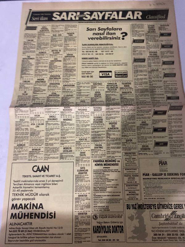 SABAH İSTANBUL Sarı sayfalar seri ilan GAZETESİ SABAH İSTANBUL DOĞUM GÜNÜ GAZETESİ - 15 HAZİRAN 1992 - Can tekstil Sanayi ve ticaret-Pierre-yaşam hastanesi-mert oto elektrik-ruşen ticaret-Opel-Delta-Uludağ-Seda-duru-Ayhanlar Yol-Star duş-süperstar jeneratör-gözel-Hürsan sauna-barocco-, DİNÇ BİLGİN tarafından kaleme alınmıştır. SABAH İSTANBUL Sarı sayfalar seri ilan GAZETESİ SABAH İSTANBUL DOĞUM GÜNÜ GAZETESİ - 15 HAZİRAN 1992 - Can tekstil Sanayi ve ticaret-Pierre-yaşam hastanesi-mert oto elektrik-ruşen ticaret-Opel-Delta-Uludağ-Seda-duru-Ayhanlar Yol-Star duş-süperstar jeneratör-gözel-Hürsan sauna-barocco- adlı eser Türkçe dilindedir. Eserin içeriğinde Türkçe dilinde bölümlere de yer verilmektedir.
