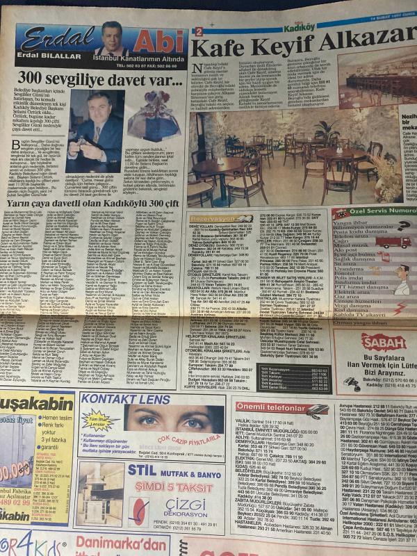 SABAH KADIKÖY ANADOLU YAKASI GAZETESİ - 14 Şubat 1997 -Erdal Bilallar-Rezervasyonlar-Radyolar-Tv Kanalları-Önemli telefonlar--nöbetçi eczaneler-film sinemada izlenir-asayiş raporu-ABC Duşakabin-Üroklinik ve İnterlab Tanı Laboratuarı-Evıta-Dırejan-Erkekler Kadınlar kullanma kılavuzu-Otogargara-Demet Akbağ-Yılmaz Erdoğan-Sinan Bengier-Pinokyo-Sleepers-Atatürk Kitaplığı-Küheylan-Rüstem Batum-Yeni Baştan-Afacanlar Sirki-Red Kit-Galeri Özgür-Rapsodi Müzik Kursu-Pendik akşam lisesi-haseki başhekim dayanmıyor-Ahmet Çetinkaya-Mehmet Ömür-Fikret koç--nejat cambazoğlu-lütfiye eroğlu-Mustafa yenigün-Engin aktel-Cahit ayakkabı--Ba kömür-dekorasyon-Kafe keyfi Alkazar-Serpil Çakmaklı-Levent İnanır-Sinema dergisi-melis estetik merkezi-ferhanşensoy, DİNÇ BİLGİN tarafından kaleme alınmıştır. SABAH KADIKÖY ANADOLU YAKASI GAZETESİ - 14 Şubat 1997 -Erdal Bilallar-Rezervasyonlar-Radyolar-Tv Kanalları-Önemli telefonlar--nöbetçi eczaneler-film sinemada izlenir-asayiş raporu-ABC Duşakabin-Üroklinik ve İnterlab Tanı Laboratuarı-Evıta-Dırejan-Erkekler Kadınlar kullanma kılavuzu-Otogargara-Demet Akbağ-Yılmaz Erdoğan-Sinan Bengier-Pinokyo-Sleepers-Atatürk Kitaplığı-Küheylan-Rüstem Batum-Yeni Baştan-Afacanlar Sirki-Red Kit-Galeri Özgür-Rapsodi Müzik Kursu-Pendik akşam lisesi-haseki başhekim dayanmıyor-Ahmet Çetinkaya-Mehmet Ömür-Fikret koç--nejat cambazoğlu-lütfiye eroğlu-Mustafa yenigün-Engin aktel-Cahit ayakkabı--Ba kömür-dekorasyon-Kafe keyfi Alkazar-Serpil Çakmaklı-Levent İnanır-Sinema dergisi-melis estetik merkezi-ferhanşensoy adlı eser Türkçe dilindedir.