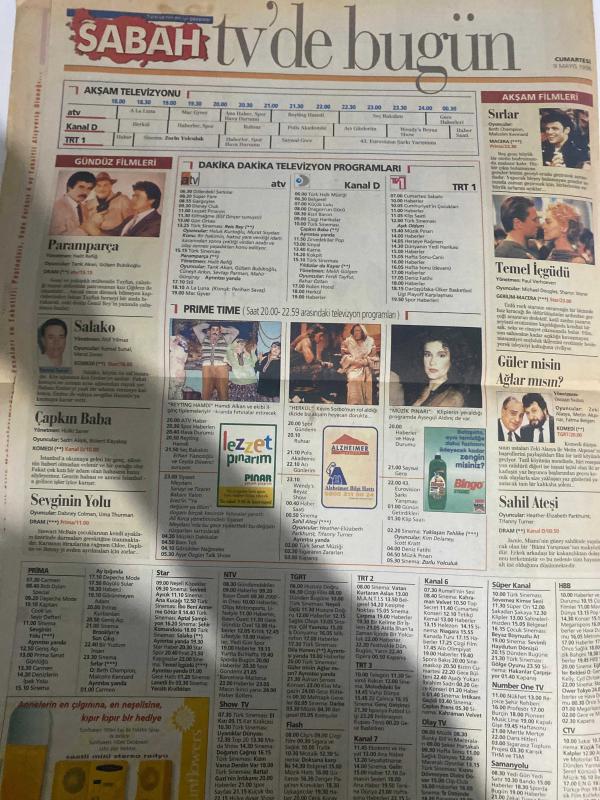 SABAH MELODİ GAZETESİ DOĞUM GÜNÜ HEDİYESİ - 9 MAYIS 1998 -Meltem Pusat - Emine S. Beder - Hale Packan - Patrick Mc Donnell - Mort Walker - Dick Browne - Tom Armstrong - Süleyman Turan - Özcan Deniz - Elin Moralıoğlu - Nükhet Duru - Elif Dinçer - Sezen Aksu - Kenan Doğulu - Emel Müftüoğlu - Grup Vitamin - İzel Çeliköz - Mustafa Sandal - Mazhar Alanson - Fuat Güner - Özkan Uğur - Sibel Alaş - Hayri Kozakçıoğlu - Mazlume Abacı - Mazhar - Ruhsar - Hamdi Alkan - Uche - Ebru Gündeş - Halit Refiğ - Gülşen Bubikoğlu - Hulki Saner - Metin Akpınar - Zeki Alasya - Paul Verhoeven - Sharon Stone - Robert Glaudini - Elisabeth Parkinson - Elizabeth Arden Çocuğun beyin gelişimi - Fırında tavuk - Şehriyeli piliç kapaması - Evdeki Çin koleksiyonu - Özel indirim - Uluslararası başarı - Ah Şu Kocalar - Mimi ile Muti - Bizim Aile - Marvin - Şöhret Tuzağı - En eğlenceli yarışma - Hasat aklını yitiriyor - Şaşırtan itiraflar - Büyük finale doğru - Aida Dosyası - Deniz’in bütün renkleri - Dökülen Yapraklar -