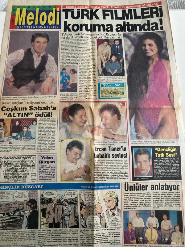 SABAH MELODİ GAZETESİ DOĞUM GÜNÜ HEDİYESİ (Türkish Newspapper) - 15 AĞUSTOS 1990 -Sibel Can-Eyşan Özhim-Meflun Olgaç-Coşkun Sabah-Derya Arbaş-Ercan Taner-Burçin Taner-Batuhan-Paul Newman-Ed Begley-Zeliha Berksoy-Tamer Leventoğlu-Özdemir Nutku-Hulya Koçyiğit-Süleyman Turan-Ahmet Levendoğlu-Cüneyt Arkın-Sezer İnanoğlu-Bahar Öztan-Salih Kırmızı-Erol Taş-Kadir Savun-Perihan Kızıl-Nükhet Duru-Hüsam Baba-Yakup-Ayşe-Veysel Güloğlu-Ayhan Topaloğlu-Mehmet Yazıcı-Ali Kayapınar-Ercan Sert-Fikret Coşkun-Tahsin Koçtürk-Ruşen Parlak-Size benzemeyenle evlenmeyin-Erkekler kadına destek olmalıdır-Bebekler de sık anne istiyorlar-Atletik olun-Eda nasıl değişti-Hasta kocanıza ilgi gösterin-Sevgi bağları-Türk filmleri koruma altında-Coşkun Sabah'a altın ödül-Ercan Taner'in babalık sevinci-Gençliğin tatlı sesi-Ünlüler anlatıyor-Gençlik rüzgarı-Kadın Bakanlığını halkımız istedi-Bitkilerin mucizesi-İlginç konferans-Asla aldatmam-Geleceğinizi öğrenin-Bitkilerle şifa bulun-Mahkum-Aşk Romanı-Cinsel Sorunlarınız adlı eser Türkçe dilindedir.