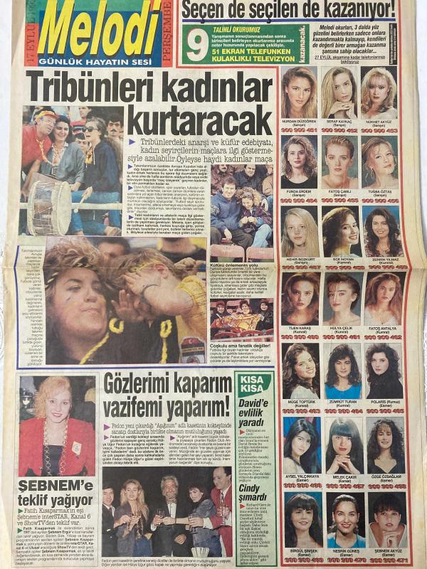 SABAH MELODİ GAZETESİ DOĞUM GÜNÜ HEDİYESİ (Türkish Newspapper) - 17 EYLÜL 1992 -Nurdan Düzgören-Serap Kaynak-Nüket Akyüz-Funda Erdem-Fatoş Çamlı-Tuğba Öztaş-Nehir Bozkurt-Ece Neytan-Zerrin Yılmaz-Tülin Karaş-Hülya Çelik-Fatoş Antalya-Müge Topruköy-Zümrüt Duran-Polaris-Aysel Yalçınkaya-Melek Çakır-Özge Özsaglam-Birgül Sinek-Nesrin Güneş-Şebnem-Fatih Kasımpaşa-Yıldırım Bekçi-Grace Jones-Cindy Crawford-Claudia Schiffer-Isabella Rossellini-David Bowie-Kenan-Suna E.-Süleyman Turan-Sumru Yavrucuk-Lenan Erçetingöz Tribünleri kadınlar kurtaracak-Gözlerimi kaparım vazifemi yaparım-SEBNEM’e teklif yağıyor-KISA KISA-David’e evlilik yaradı-Cindy şımardı-Dünyadan kısa kısa-Görgü kuralları-Gönül Abla-Rüyalarınız-Renklerin yarattığı cazibe-Güzellerin güzellik sırları-Jelatinli yumurta-Selülite karşı spor-Barbie gökkuşağı yapabilirsin-Kenan’ın not defteri-Unutulmayan aşklar-Kızlık olayı beni etkiledi-Cinsel bilgiler-Garip Olaylar-Neden yok oldular-Altın Portakallı ağır işçi-Filmde gerçekten sevişiri adlı eser Türkçe dilindedir.