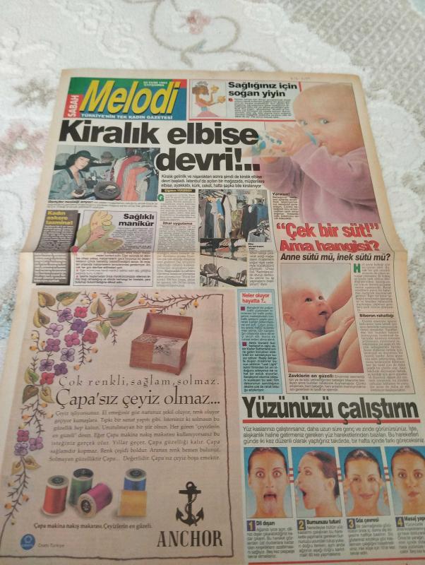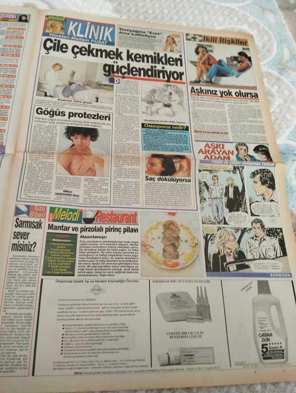SABAH MELODİ GAZETESİ KADINLARA ÖZEL GAZETESİ - 20 Ekim 1993 -Karikatürler-Walt Disney/Boncuk-Mort Walker-Dick Browne/Bizim Aile-Tom Armstrong/Marvin-Graham Allen-John Dodd/Kral Kedi-Süleyman Turan/Dön Artık-Astroloji-Bülent Kısa-Klinik-Meltem Pusat-sağlığınız için soğan yiyin-kiralık elbise devri-çek bir süt-anne sütü mü inek sütü mü-kadın askere tazminat-sağlıklı manikür-yüzünüzü çalıştırın-neler oluyor hayatta-zevklerin en güzeli-bigudiler konuşuyor-angora kazak yıkarken-süt taşması-emin otomotiv-çile çekmek kemikleri güçlendiriyor-tereyağı-aşkınız yok olursa-saç dökülüyorsa-sarımsak sever misiniz-mantar ve pirzolalı pirinç pilavı-kedi kızın dönüşü-jale saçlarını erkek berberine kestiriyor-cüce yıldızlar-jurassic Park adlı eser, Kitap > Süreli Yayınlar > Gazeteler > Türkiye > Genel > Günlük kategorisinde İkinci El olarak satıştadır.