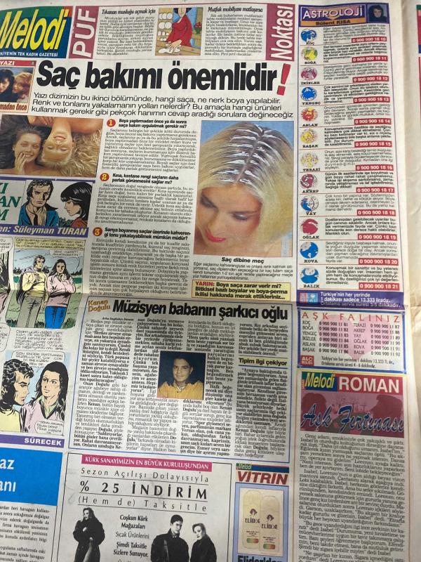 SABAH MELODİ GAZETESİ KADINLARA ÖZEL GAZETESİ - 28 Kasım 1993 -Karikatürler-Walt Disney/Boncuk-Mort Walker-Dick Browne/Bizim Aile-Tom Armstrong/Marvin-Graham Allen-John Dodd/Kral Kedi-Süleyman Turan/Dön Artık-Astroloji-Bülent Kısa-Klinik-Meltem Pusat-saks-Prenses Diana-spor tarzı-Kaskol kış aylarının vazgeçilmez aksesuarıdır-jinekologlar ilk randevu-Profesör Dr. Ahmet Murat-cenap optik-Demirdöküm-Coşkun Küre-müzisyen babanın şarkıcı oğlu Kenan doğulu-Bülent Şar-mahsun Kırmızıgül-Kızılmaske-Zagor-Emrah-Michael Fox-Catherine Deneuve, DİNÇ BİLGİN tarafından kaleme alınmıştır. SABAH MELODİ GAZETESİ KADINLARA ÖZEL GAZETESİ - 28 Kasım 1993 -Karikatürler-Walt Disney/Boncuk-Mort Walker-Dick Browne/Bizim Aile-Tom Armstrong/Marvin-Graham Allen-John Dodd/Kral Kedi-Süleyman Turan/Dön Artık-Astroloji-Bülent Kısa-Klinik-Meltem Pusat-saks-Prenses Diana-spor tarzı-Kaskol kış aylarının vazgeçilmez aksesuarıdır-jinekologlar ilk randevu-Profesör Dr. Ahmet Murat-cenap optik-Demirdöküm-Coşkun Küre-müzisyen babanın şarkıcı oğlu Kenan doğulu-Bülent Şar-mahsun Kırmızıgül-Kızılmaske-Zagor-Emrah-Michael Fox-Catherine Deneuve adlı eser Türkçe dilindedir. Eserin içeriğinde Türkçe dilinde bölümlere de yer verilmektedir.