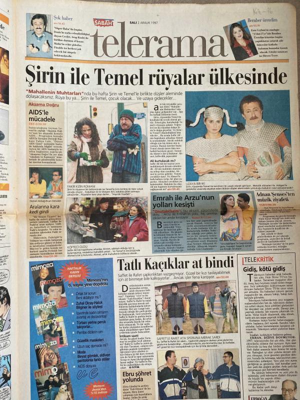 SABAH MELODİ GAZETESİ VE SABAH TELERAMA GAZETESİ -2 Aralık 1997 -Söyleyemedikleriniz--Ah şu kocalar-Hale Pakcan-Mimi ile Muti-Patrıck Mc Donnel-Bizim Aile-Mort Walker-Dıck Browne-Marvın-Tom Amstrong-astroloji-Şerif Ercan-Telekritik-Erdoğan sevgin--sabah TV’de bugün-Elif ergü-Özlem Akalan-Erol evgin-Bugün ne yapalım-Mondi-Otomobil fuarı-Sinan çetin-Meltem pusat-Feriha Büyükünal-Prof.Acar Baltaş-Prof.Zühal Baltaş-Demet akbağ-Bican Günalan-Seynan Levent-Süper Baba-Esra Ceyhan-Ebru Gündeş-Küçük Emrah-Mahallenin muhtarları-Tatlı Kaçıklar-Adnan şenses-Fakir kızın romanı-İstiyorum-Bülent Ersoy-Atilla Saral-Fikret Hakan-Sirk Yıldızı-Çeşme-Ferdi Tayfur-Necla Hazır-Dansçı Korsan-Beyaz Güvercin-Çeçilya-Sahne ışıkları-Claude Fournier-Peter peter bodganovich-Ala geyik-Süreyya duru-Cüneyt Arkın-Mine mutlu-Bombalar arasında-Tehlike çemberi-Jack ersgard adlı eser, Kitap > Süreli Yayınlar > Gazeteler > Türkiye > Genel > Günlük kategorisinde İkinci El olarak satıştadır.