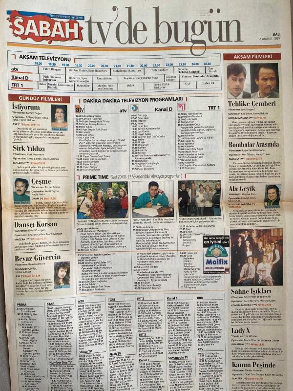 SABAH MELODİ GAZETESİ VE SABAH TELERAMA GAZETESİ -2 Aralık 1997 -Söyleyemedikleriniz--Ah şu kocalar-Hale Pakcan-Mimi ile Muti-Patrıck Mc Donnel-Bizim Aile-Mort Walker-Dıck Browne-Marvın-Tom Amstrong-astroloji-Şerif Ercan-Telekritik-Erdoğan sevgin--sabah TV’de bugün-Elif ergü-Özlem Akalan-Erol evgin-Bugün ne yapalım-Mondi-Otomobil fuarı-Sinan çetin-Meltem pusat-Feriha Büyükünal-Prof.Acar Baltaş-Prof.Zühal Baltaş-Demet akbağ-Bican Günalan-Seynan Levent-Süper Baba-Esra Ceyhan-Ebru Gündeş-Küçük Emrah-Mahallenin muhtarları-Tatlı Kaçıklar-Adnan şenses-Fakir kızın romanı-İstiyorum-Bülent Ersoy-Atilla Saral-Fikret Hakan-Sirk Yıldızı-Çeşme-Ferdi Tayfur-Necla Hazır-Dansçı Korsan-Beyaz Güvercin-Çeçilya-Sahne ışıkları-Claude Fournier-Peter peter bodganovich-Ala geyik-Süreyya duru-Cüneyt Arkın-Mine mutlu-Bombalar arasında-Tehlike çemberi-Jack ersgard, DİNÇ BİLGİN tarafından kaleme alınmıştır. SABAH MELODİ GAZETESİ VE SABAH TELERAMA GAZETESİ -2 Aralık 1997 -Söyleyemedikleriniz--Ah şu kocalar-Hale Pakcan-Mimi ile Muti-Patrıck Mc Donnel-Bizim Aile-Mort Walker-Dıck Browne-Marvın-Tom Amstrong-astroloji-Şerif Ercan-Telekritik-Erdoğan sevgin--sabah TV’de bugün-Elif ergü-Özlem Akalan-Erol evgin-Bugün ne yapalım-Mondi-Otomobil fuarı-Sinan çetin-Meltem pusat-Feriha Büyükünal-Prof.Acar Baltaş-Prof.Zühal Baltaş-Demet akbağ-Bican Günalan-Seynan Levent-Süper Baba-Esra Ceyhan-Ebru Gündeş-Küçük Emrah-Mahallenin muhtarları-Tatlı Kaçıklar-Adnan şenses-Fakir kızın romanı-İstiyorum-Bülent Ersoy-Atilla Saral-Fikret Hakan-Sirk Yıldızı-Çeşme-Ferdi Tayfur-Necla Hazır-Dansçı Korsan-Beyaz Güvercin-Çeçilya-Sahne ışıkları-Claude Fournier-Peter peter bodganovich-Ala geyik-Süreyya duru-Cüneyt Arkın-Mine mutlu-Bombalar arasında-Tehlike çemberi-Jack ersgard adlı eser Türkçe dilindedir.