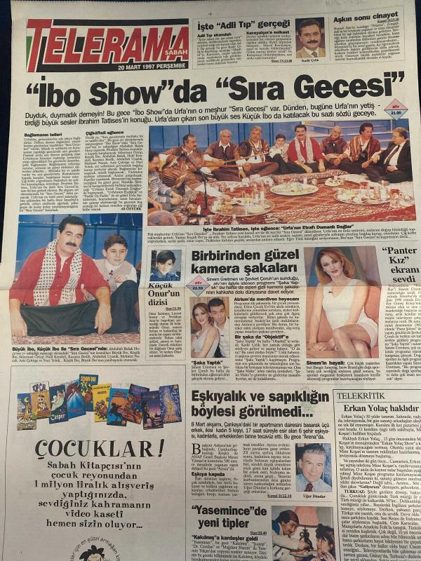 SABAH MELODİ GAZETESİ VE SABAH TELERAMA GAZETESİ - 20 Mart 1997 -Sabah kitapçısı-küçük İbo-İbrahim Tatlıses—Abdullah balak hoca-Süleyman Öztop-Halil kendirli-Kazancı bedi-Abdullah uyanık-Mehmet Nac-aziz Çekirge-Uğur Dündar-Yasemin Yalçın—Zehra Alp Türk-Ayşe Demirel-Ali Erdoğan-Şevket Çoruh—Sinem Üretmen—Onur Sarıkaya-Cüneyt Arkın-Gülşen Bubikoğlu-Fikret Hakan-Çeçilya Daymaz-Erol Dezeren-Neslihan Acar-Fatma Girik-Yılmaz Zafer-Selahattin Alpay-Oya Aydoğan-Deborah Kerr, DİNÇ BİLGİN tarafından kaleme alınmıştır. SABAH MELODİ GAZETESİ VE SABAH TELERAMA GAZETESİ - 20 Mart 1997 -Sabah kitapçısı-küçük İbo-İbrahim Tatlıses—Abdullah balak hoca-Süleyman Öztop-Halil kendirli-Kazancı bedi-Abdullah uyanık-Mehmet Nac-aziz Çekirge-Uğur Dündar-Yasemin Yalçın—Zehra Alp Türk-Ayşe Demirel-Ali Erdoğan-Şevket Çoruh—Sinem Üretmen—Onur Sarıkaya-Cüneyt Arkın-Gülşen Bubikoğlu-Fikret Hakan-Çeçilya Daymaz-Erol Dezeren-Neslihan Acar-Fatma Girik-Yılmaz Zafer-Selahattin Alpay-Oya Aydoğan-Deborah Kerr adlı eser Türkçe dilindedir.