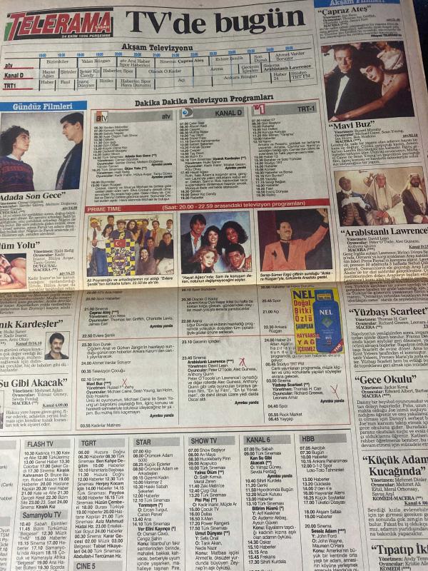 SABAH MELODİ GAZETESİ VE SABAH TELERAMA GAZETESİ - 24 Ekim 1996 -Karikatürler-Walt Disney/Boncuk-Mort Walker-Dick Browne/Bizim Aile-Tom Armstrong/Marvin-Graham Allen-John Dodd/Kral Kedi-Süleyman Turan/Dön Artık-Astroloji-Bülent Kısa-Klinik-Meltem Pusat-Telerama Programı-Sabah Filmleri-Öğlen Filmleri-Akşam Filmleri-Erdoğan Sevgin-Sabah yatakları-fakir firması-Çiğdem Kiziroğlu-Kadir Çelik-Uğur Dündar-Thomas Lan Griffith-Okan Bayülgen-Açelya Akkoyun-Çapraz Ateş-Earl Jones-Yasemince-Yasemin Yalçın-Mahmut Kırmızıgül-Bu Sevda Bitmez-Yasemin Koşal-Lale Oraloğlu-adada son gece-Serdar güreş-Meltem Doğanay-Yaman tarcan-Kadir İnanır-Hülya Avşar-Tanju gürsu-Ölüm yolu-uyanık kardeşler-Müjdat gezen-Arzu okka—Kansu gibi akacak-Yılmaz Erdoğan-Arabistan Lawrence adlı eser, Kitap > Süreli Yayınlar > Gazeteler > Türkiye > Genel > Günlük kategorisinde İkinci El olarak satıştadır.