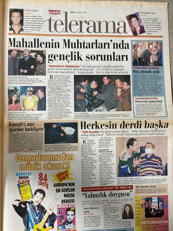 SABAH MELODİ GAZETESİ VE SABAH TELERAMA GAZETESİ -4 Kasım 1997 -Söyleyemedikleriniz--Ah şu kocalar-Hale Pakcan-Mimi ile Muti-Patrıck Mc Donnel-Bizim Aile-Mort Walker-Dıck Browne-Marvın-Tom Amstrong-astroloji-Şerif Ercan-Telekritik-Erdoğan sevgin--sabah TV’de bugün-Babaevi-Bugün ne yapalım-Sofra dergisi-Elif Ergu-Deniz Gökçer-Meltem Pusat-Yalçın menteş-tatlı Kaçıklar--Demet Akbağ-Yılmaz Erdoğan-bir Demet tiyatro— Ebru Gündeş-deli divane-Aydın—gelin kaynana-Esra Ceyhan—Emrah—Unutabilsem—Jülide Sevim Aysun-günah bende mi-Türkan Şoray—Engin Çağlar—güzelim—Serpil Çakmaklı-Tarık tarcan—cesaretin bedeli-dişi şeytan—afacan dennis-sonsuz takip-ferhunde hanımlar—Walter Matthau-Mason Gamble-John Cusack-Jack Warden, DİNÇ BİLGİN tarafından kaleme alınmıştır. SABAH MELODİ GAZETESİ VE SABAH TELERAMA GAZETESİ -4 Kasım 1997 -Söyleyemedikleriniz--Ah şu kocalar-Hale Pakcan-Mimi ile Muti-Patrıck Mc Donnel-Bizim Aile-Mort Walker-Dıck Browne-Marvın-Tom Amstrong-astroloji-Şerif Ercan-Telekritik-Erdoğan sevgin--sabah TV’de bugün-Babaevi-Bugün ne yapalım-Sofra dergisi-Elif Ergu-Deniz Gökçer-Meltem Pusat-Yalçın menteş-tatlı Kaçıklar--Demet Akbağ-Yılmaz Erdoğan-bir Demet tiyatro— Ebru Gündeş-deli divane-Aydın—gelin kaynana-Esra Ceyhan—Emrah—Unutabilsem—Jülide Sevim Aysun-günah bende mi-Türkan Şoray—Engin Çağlar—güzelim—Serpil Çakmaklı-Tarık tarcan—cesaretin bedeli-dişi şeytan—afacan dennis-sonsuz takip-ferhunde hanımlar—Walter Matthau-Mason Gamble-John Cusack-Jack Warden adlı eser Türkçe dilindedir.