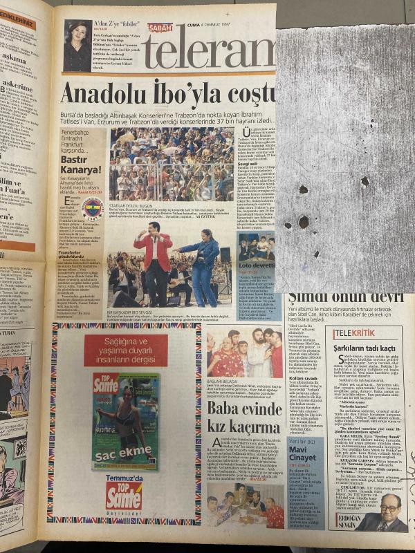 SABAH MELODİ GAZETESİ VE SABAH TELERAMA GAZETESİ -4 Temmuz 1997 -Söyleyemedikleriniz-Süleyman Turan-Ah şu kocalar-Hale Pakcan-Mimi ile Muti-Patrıck Mc Donnel-Bizim Aile-Mort Walker-Dıck Browne-Marvın-Tom Amstrong-astroloji-Bugün ne yapalım-Fatma Torun-Elif ergü-Nilay Çınar--Hamdi tanses-İbrahim Tatlıses-Esra Ceyhan--Rasim Öztekin-yeni dizi mavi cinayet-gizli Yara-Mahmut Tuncer-nubar Terziyan-Kemal Sunal-tosun Paşa-Şener Şen-Ayşen Gruda, DİNÇ BİLGİN tarafından kaleme alınmıştır. SABAH MELODİ GAZETESİ VE SABAH TELERAMA GAZETESİ -4 Temmuz 1997 -Söyleyemedikleriniz-Süleyman Turan-Ah şu kocalar-Hale Pakcan-Mimi ile Muti-Patrıck Mc Donnel-Bizim Aile-Mort Walker-Dıck Browne-Marvın-Tom Amstrong-astroloji-Bugün ne yapalım-Fatma Torun-Elif ergü-Nilay Çınar--Hamdi tanses-İbrahim Tatlıses-Esra Ceyhan--Rasim Öztekin-yeni dizi mavi cinayet-gizli Yara-Mahmut Tuncer-nubar Terziyan-Kemal Sunal-tosun Paşa-Şener Şen-Ayşen Gruda adlı eser Türkçe dilindedir.