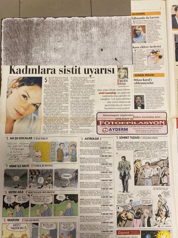 SABAH MELODİ GAZETESİ VE SABAH TELERAMA GAZETESİ -6 Aralık 1997 -Seda Kaya Güler-Söyleyemedikleriniz--Ah şu kocalar-Hale Pakcan-Mimi ile Muti-Patrıck Mc Donnel-Bizim Aile-Mort Walker-Dıck Browne-Marvın-Tom Amstrong-astroloji-Şerif Ercan-Telekritik-Erdoğan sevgin--sabah TV’de bugün-Elif ergü-Mondi-Top Sante Dergisi-Mimoza bayilerde-Orhan Kural-Meltem Pusat-Dr.Mebure Altuğ-İbrahim Tatlıses-Fırat-Elif Dinçer-Yeşil Salkım-Ayderm Dermatoloji Merkezi-Migros-Küçük Onur-Levent inanır-İner misin Çıkar mısın-Boran Kaya-Ali Öztürk-Çiçek Taksi-Orhan Gencebay-Kan çiçeği-Küçük prenses-Walter Lang-Güngörmüşler-İlhan Engin-Ayşen Gruda-Hadi Çaman-Sapık Kadın-Orhan Elmas-Perihan Savaş-Tarık Tarcan-Bahar Öztan-Beddua-Bülent Ersoy-Mine Mutlu-Neşeli Kızlar-Süper Mario Kardeşler adlı eser, Kitap > Süreli Yayınlar > Gazeteler > Türkiye > Genel > Günlük kategorisinde İkinci El olarak satıştadır.