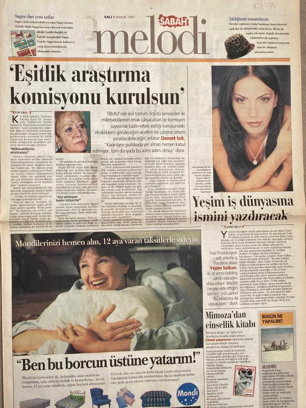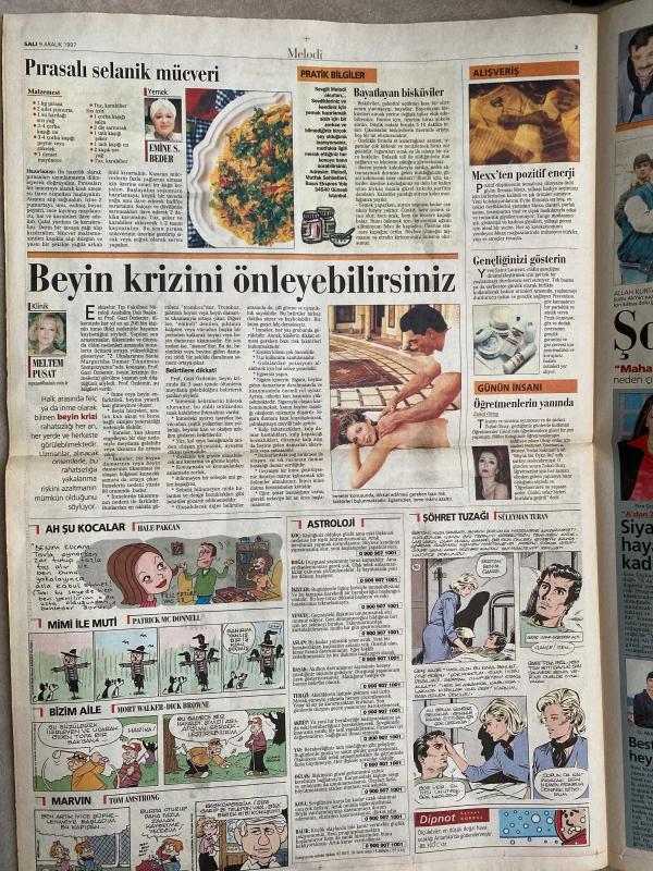 SABAH MELODİ GAZETESİ VE SABAH TELERAMA GAZETESİ -9 Aralık 1997 -Söyleyemedikleriniz--Ah şu kocalar-Hale Pakcan-Mimi ile Muti-Patrıck Mc Donnel-Bizim Aile-Mort Walker-Dıck Browne-Marvın-Tom Amstrong-astroloji-Şerif Ercan-Telekritik-Erdoğan sevgin--sabah TV’de bugün-Elif ergü-Demet Işık-Mimoza-Mondi-Emine S. Beder-Zuhal Olcay-Kenan İmirzalıoğlu-Deniz Akkaya-Mehmet Ali Erbil-Süper Baba-Mexx-Meltem Pusat-Küçük Emrah-Sofra dergi-Esra Ceyhan-Mahallenin Muhtarları-Ebru Gündeş-Şalvar davası-Müjde ar-Trampet sesleri-Bir ilkbahar sabahı-Afrika çığlıkları-Erol evgin-Ne şeker şey-Charles Barton-Türkan Şoray-Göksel arsoy-Boşanma 2-Melih Gülgen-Fikret Hakan-Kafkas Kartalı, DİNÇ BİLGİN tarafından kaleme alınmıştır. SABAH MELODİ GAZETESİ VE SABAH TELERAMA GAZETESİ -9 Aralık 1997 -Söyleyemedikleriniz--Ah şu kocalar-Hale Pakcan-Mimi ile Muti-Patrıck Mc Donnel-Bizim Aile-Mort Walker-Dıck Browne-Marvın-Tom Amstrong-astroloji-Şerif Ercan-Telekritik-Erdoğan sevgin--sabah TV’de bugün-Elif ergü-Demet Işık-Mimoza-Mondi-Emine S. Beder-Zuhal Olcay-Kenan İmirzalıoğlu-Deniz Akkaya-Mehmet Ali Erbil-Süper Baba-Mexx-Meltem Pusat-Küçük Emrah-Sofra dergi-Esra Ceyhan-Mahallenin Muhtarları-Ebru Gündeş-Şalvar davası-Müjde ar-Trampet sesleri-Bir ilkbahar sabahı-Afrika çığlıkları-Erol evgin-Ne şeker şey-Charles Barton-Türkan Şoray-Göksel arsoy-Boşanma 2-Melih Gülgen-Fikret Hakan-Kafkas Kartalı adlı eser Türkçe dilindedir.
