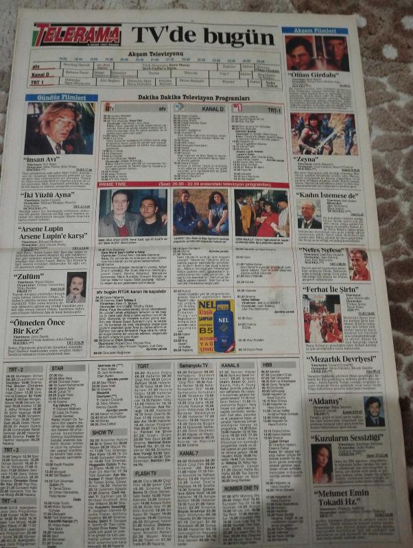 SABAH MELODİ GAZETESİ VE SABAH TELERAMA GAZETESİ KADINLARA ÖZEL - 05 Ocak 1997 -Uzlaşma filmi-Karikatürler-Walt Disney/Boncuk-Mort Walker-Dick Browne/Bizim Aile-Tom Armstrong/Marvin-Graham Allen-John Dodd/Kral Kedi-Süleyman Turan/Dön Artık-Astroloji-Bülent Kısa-Klinik-Meltem Pusat-Telerama Programı-Sabah Filmleri-Öğlen Filmleri-Akşam Filmleri-Erdoğan Sevgin-sadık-bir Demet tiyatro-demet akbağ-yılmaz erdoğan-feriştah-fakir fakir ve çizgi çiçekler-oyuncak-özlem akalan-seda Kaya güler-yaygın-türkiye-tüylü-oyuncak-ah şu kocalar-süleyman turan-ikizler-koç-hastaneye-gurbetçiler-izzet altınmeşe-baba-atv-aykut orayı-ruhsal öcal-yeşim salkım-sinema-faris ağa-eşkiya-ebru keser-bilgi egemen-yılmaz karakoyunlu-kemal sunal-ali sunal-şaban ile şirin-bizimkiler-bilgi-aydın-sabri bey-elçin temel-ayseli Gürsoy-TGRT-baba-fethiye-dakika dakika-zulüm-temel gürsu-orhan gencebay-yıldız kenter-aldanış-reha yeprem-kuzuların sessizliği-ölüm girdabı-samanyolu-john derek adlı eser, Kitap > Süreli Yayınlar > Gazeteler > Türkiye > Genel > Günlük kategorisinde İkinci El olarak satıştadır.