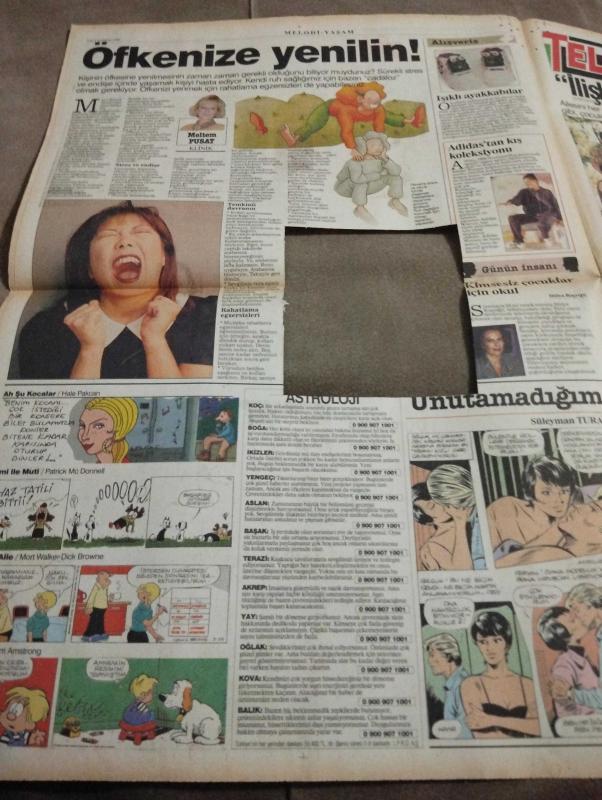 SABAH MELODİ GAZETESİ VE SABAH TELERAMA GAZETESİ KADINLARA/ ÖZEL - 10 Eylül 1996 -Doğum kontrol yöntemi,Kürtaj haberi-Karikatürler-Walt Disney/Boncuk-Mort Walker-Dick Browne/Bizim Aile-Tom Armstrong/Marvin-Graham Allen-John Dodd/Kral Kedi-Süleyman Turan/Dön Artık-Astroloji-Bülent Kısa-Klinik-Meltem Pusat-Telerama Programı-Sabah Filmleri-Öğlen Filmleri-Akşam Filmleri-Erdoğan Sevgin-türkiye-eflatun-adidas-hülya koçyiğit-ilişkiler-zeki müren-puşkaş ergun-Sezen Cumhur önal-ertan anapa-müzik yelpazesi-evrim solmaz-hüseyin köroğlu-tülaysa çizgi Nur sürer-demet sağıroğlu-haluk kurtoğlu-mahmut hekimoğlu-yüksel arıcı-nur gürkan-menderes samancılar-gökhan mete-Ayşen tekin-levent inanır-erdoğan akduman-ayla oranlı-cengiz sezici-taner aşkın-kemal sunal-mahsun kırmızıgül-filmi topaloğlu-türk sineması-sahte dünyalar-haberler-hava durumu-ahmet özhan-fikret hakan-arzu aydın-arı maya-sihirli kuklalar adlı eser, Kitap > Süreli Yayınlar > Gazeteler > Türkiye > Genel > Günlük kategorisinde İkinci El olarak satıştadır.