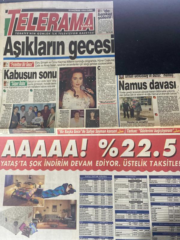 SABAH MELODİ GAZETESİ VE SABAH TELERAMA GAZETESİ KADINLARA ÖZEL - 10 Haziran 1994 -Karikatürler-Walt Disney/Boncuk-Mort Walker-Dick Browne/Bizim Aile-Tom Armstrong/Marvin-Graham Allen-John Dodd/Kral Kedi-Süleyman Turan/Dön Artık-Astroloji-Bülent Kısa-Klinik-Meltem Pusat-Telerama Programı-Sabah Filmleri-Öğlen Filmleri-Akşam Filmleri-Erdoğan Sevgin-Yataş mobilya -ce baba-Şevket Altuğ--hüner Çoşkuner—akrep Nalan-Ebru Şimşek-Öznur kaçmaz-Sefa Önal-Alev oraloğlu-Aylin Livaneli-Ebru Şimşek—Tarkan-Kenan doğulu-muazzez ersoy--Meliha Atalay-lalezar Mürşitpınar-gönül Akkor-- Nur Ertürk-Süleyman Demirel-Lego—Ali Öztürk—güneri Civaoğlu—Aykut ışıklar-İpek Çeken—Emrah—Çeçilya daymaz, DİNÇ BİLGİN tarafından kaleme alınmıştır. SABAH MELODİ GAZETESİ VE SABAH TELERAMA GAZETESİ KADINLARA ÖZEL - 10 Haziran 1994 -Karikatürler-Walt Disney/Boncuk-Mort Walker-Dick Browne/Bizim Aile-Tom Armstrong/Marvin-Graham Allen-John Dodd/Kral Kedi-Süleyman Turan/Dön Artık-Astroloji-Bülent Kısa-Klinik-Meltem Pusat-Telerama Programı-Sabah Filmleri-Öğlen Filmleri-Akşam Filmleri-Erdoğan Sevgin-Yataş mobilya -ce baba-Şevket Altuğ--hüner Çoşkuner—akrep Nalan-Ebru Şimşek-Öznur kaçmaz-Sefa Önal-Alev oraloğlu-Aylin Livaneli-Ebru Şimşek—Tarkan-Kenan doğulu-muazzez ersoy--Meliha Atalay-lalezar Mürşitpınar-gönül Akkor-- Nur Ertürk-Süleyman Demirel-Lego—Ali Öztürk—güneri Civaoğlu—Aykut ışıklar-İpek Çeken—Emrah—Çeçilya daymaz adlı eser Türkçe dilindedir.