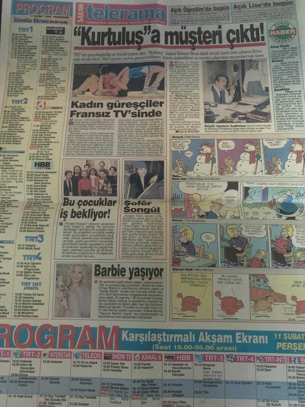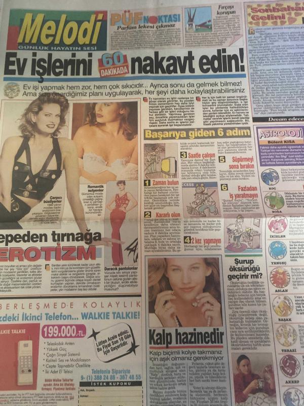 SABAH MELODİ GAZETESİ VE SABAH TELERAMA GAZETESİ KADINLARA ÖZEL -11 Şubat 1993-Karikatürler-Walt Disney/Boncuk-Mort Walker-Dick Browne/Bizim Aile-Tom Armstrong/Marvin-Graham Allen-John Dodd/Kral Kedi-Süleyman Turan/Dön Artık-Astroloji-Bülent Kısa-Klinik-Meltem Pusat-Telerama Programı-Sabah Filmleri-Öğlen Filmleri-Akşam Filmleri-Erdoğan Sevgin-filiz Vural-Nazlı Deniz kuruoğlu-neşe Erberk erden-Meltem Hakar-Hayri Caner-Cemil Çetin-Tunç başaran-Pemra gözübüyük-rutkay Aziz-Tunç başaran-Cemil Çetin-Kapris dergisi-Hakan Ural-Sibel Can-Barış Manço-Halit Kıvanç-doludizgin-Levent kırca-Bülent Şar-Peter Falk-piyano piyano bacaksız-Şener Şen-İlyas Salman-hayri caner-Çiçek Abbas-beko-safa Önal-Kartal Tibet-Sadri Alışık-esen püsküllü- Ülkü Özen-Atilla Ergün-John Bedham-Richard Dreyfuss-Emilio Estevez-Aidan Quinn-Danny Glover-Candice Bergen-Giancario Giannini-Walkıe Talkıe-Cornelia Schild-Songül Ülkü-Ümit Volkan-Nesrin balkıs-kurtuluş adlı eser, Kitap > Süreli Yayınlar > Gazeteler > Türkiye > Genel > Günlük kategorisinde İkinci El olarak satıştadır.
