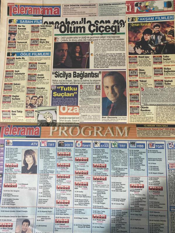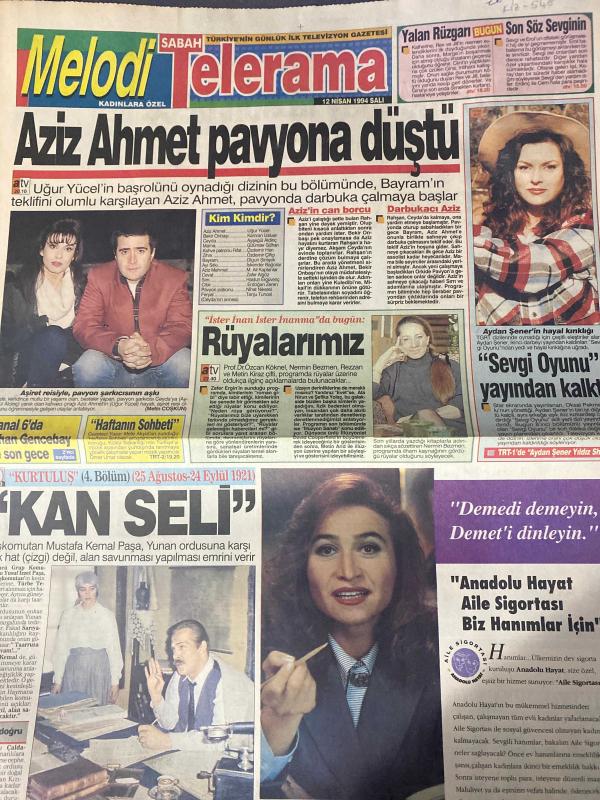 SABAH MELODİ GAZETESİ VE SABAH TELERAMA GAZETESİ KADINLARA ÖZEL - 12 Nisan 1994 -Karikatürler-Walt Disney/Boncuk-Mort Walker-Dick Browne/Bizim Aile-Tom Armstrong/Marvin-Graham Allen-John Dodd/Kral Kedi-Süleyman Turan/Dön Artık-Astroloji-Bülent Kısa-Klinik-Meltem Pusat-Telerama Programı-Sabah Filmleri-Öğlen Filmleri-Akşam Filmleri-Erdoğan Sevgin-Aziz Ahmet-Metin Coşkun-Uğur Yücel-Ayşegül Aldinç-kamran usluer-gülümser gülhan--Demirhan-olgun Şimşek--Zafer Algöz-Haldun Ergüvenç-Erdoğan Seren-Tanju tuncel-Özcan kökmen--Nermin bezmen--rezzan--METİN kiraz-aydan Şener Yıldız show-oksal Pekmezoğlu- Orhan Gencebay-Müge Arda—Cem Özer-Tarık tarcan-yeşil Altaca-gaye Aral-Selda Bağcan-vahdet Vural-Meral mansuroğlu-can Dündar-Nedim Sab-doktor Stres-ferruh Tanay-Zeynep Akın-Emin divrik-Globe dergisi-Mine Mutlu-Arzu Fatih-Kader inanır-tanya Aslan-Salih kırmızı-Ben Gazzara-Albert Pyun-Burhan Çaçan adlı eser, Kitap > Süreli Yayınlar > Gazeteler > Türkiye > Genel > Günlük kategorisinde İkinci El olarak satıştadır.