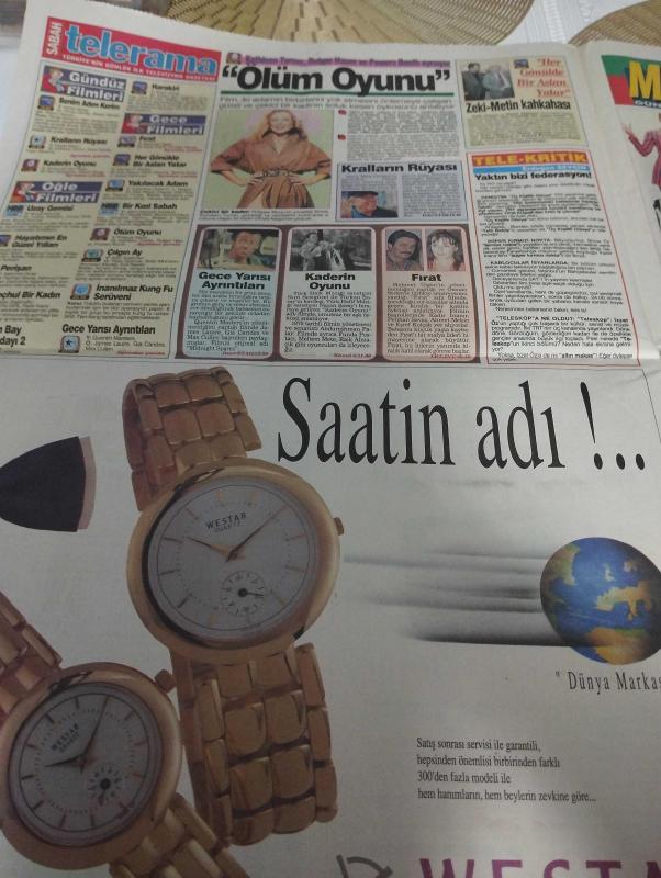 SABAH MELODİ GAZETESİ VE SABAH TELERAMA GAZETESİ KADINLARA ÖZEL - 13 Nisan 1993 -Karikatürler-Walt Disney/Boncuk-Mort Walker-Dick Browne/Bizim Aile-Tom Armstrong/Marvin-Graham Allen-John Dodd/Kral Kedi-Süleyman Turan/Dön Artık-Astroloji-Bülent Kısa-Klinik-Meltem Pusat-Telerama Programı-Sabah Filmleri-Öğlen Filmleri-Akşam Filmleri-Erdoğan Sevgin-eurovision-Uğur yücel-süleyman demirel-nurdan torun-işte müzik işte eğlence-hüsamettin cindoruk-mete akyol-güngör su-haftanın sohbeti-ömür gencer-demet akbağ-ali öztürk-hülya aksular-oktay keresteci-efes pilsen-ölüm oyunu-benim adım kerim-yılmaz güney-birsen menek-yıldırım gencer-her gönülde Bir aslan yatar-zeki Alasya çizgi Metin akpınar-selma güneri-hulusi kentmen-kaderin oyunu-nuri sesigüzel-türkan şoray-mehmet ülgen-osman sezen-kadir inanır-perihan savaş-ahmet mekin-eşref kolçak-yeşilçam-dündar yiğit-sibel turnagöl-ayşegül burçak-karşı karşıya-laf lafı açıyor-atilla içli-Nevşehir belediye başkanı-herkese günaydın-çevre aktüel-istanbul efendi adlı eser, Kitap > Süreli Yayınlar > Gazeteler > Türkiye > Genel > Günlük kategorisinde İkinci El olarak satıştadır.