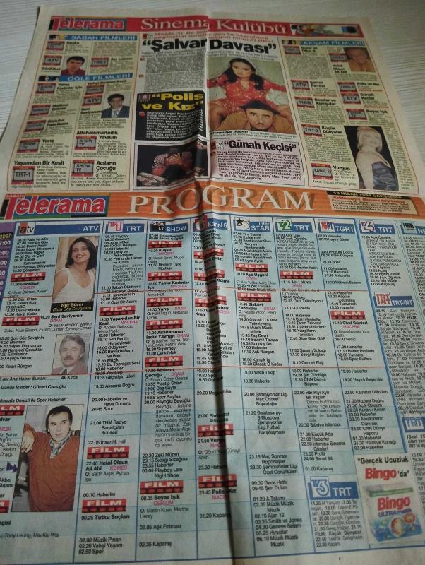 SABAH MELODİ GAZETESİ VE SABAH TELERAMA GAZETESİ KADINLARA ÖZEL -13 Nisan 1994 -Karikatürler-Walt Disney/Boncuk-Mort Walker-Dick Browne/Bizim Aile-Tom Armstrong/Marvin-Graham Allen-John Dodd/Kral Kedi-Süleyman Turan/Dön Artık-Astroloji-Bülent Kısa-Klinik-Meltem Pusat-Telerama Programı-Sabah Filmleri-Öğlen Filmleri-Akşam Filmleri-Erdoğan Sevgin-Dünya kupası belgeseli-yalan rüzgarı-son söz sevginin-türk sineması-türker inanoğlu-ay yıldız-fulya ergüneş-ankara televizyonu-ali Öztürk seçildi Rutkay aziz-cansu akbel-arzum ona-mustafa toner-cemil ipekçi-seçil Baykara seçilge Mehmet güleryüz-feyyaz yalçın-coşkun sabah sessiz gelin Fuat güner-perihan abla-süper baba-uzayda hayat-ali poyrazoğlu-yüksek tansiyon-fatih ürek-yeleğin altın çağı-vurgun-gönül yazar-Cüneyt arkın-küçük dünyalar-galatasaray-moskova-şalvar davası-şener şen-müjde ar-halil ergün-pembe mutlu-sevinç pekin-ilyas salman-müge güler-halime gülme-bisküvi fabrikası-seni seviyorum-yaşar alptekin-melike zobu-küçük kahramanlar-çöpçatan adlı eser, Kitap > Süreli Yayınlar > Gazeteler > Türkiye > Genel > Günlük kategorisinde İkinci El olarak satıştadır.