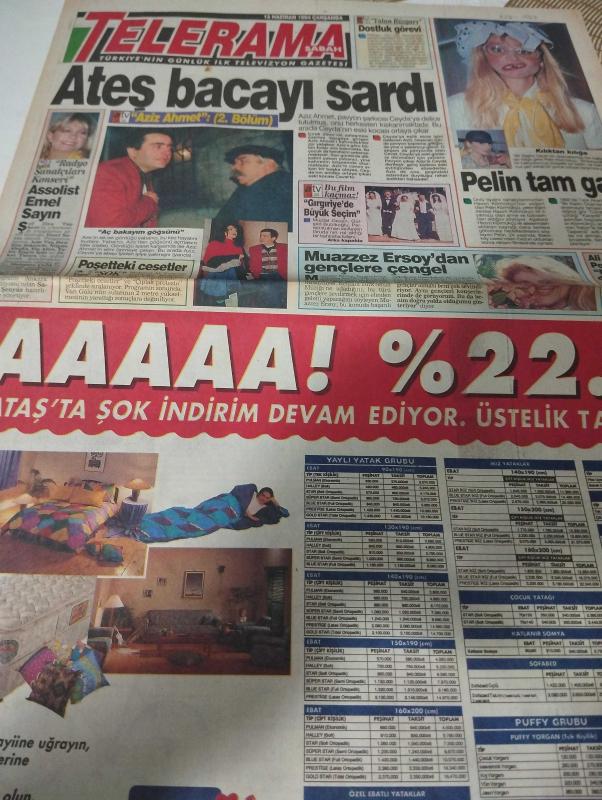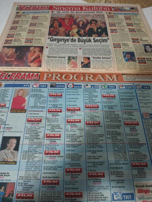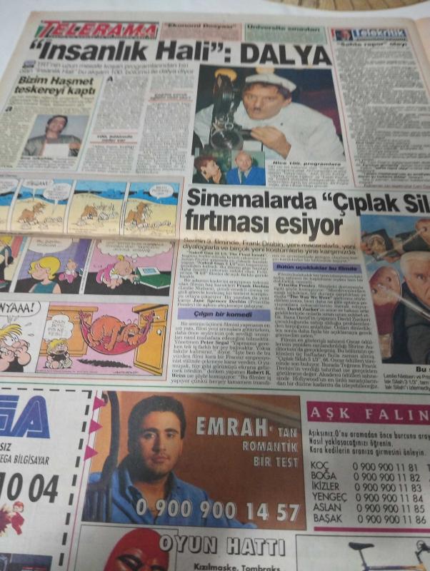SABAH MELODİ GAZETESİ VE SABAH TELERAMA GAZETESİ KADINLARA ÖZEL - 15 Haziran 1994 -Karikatürler-Walt Disney/Boncuk-Mort Walker-Dick Browne/Bizim Aile-Tom Armstrong/Marvin-Graham Allen-John Dodd/Kral Kedi-Süleyman Turan/Dön Artık-Astroloji-Bülent Kısa-Klinik-Meltem Pusat-Telerama Programı-Sabah Filmleri-Öğlen Filmleri-Akşam Filmleri-Erdoğan Sevgin-yalan rüzgarı-dostluk görevi-ateş bacayı sardı-aziz ahmet-radyo sanatçıları konseri-emel sayın-siyah taşkent-ayşe taş-ibrahim şeker efe-bela altın-tahir Engin içöz-zekai tunca-bu film kaçmaz-gırgıriye de büyük seçim-pelin körmükçü-muazzez ersoy-poşetteki cesetler-mehmet Ali yula-ali poyrazoğlu-çıplak silahla çizgi bizim haşmet-levent tülek-ekonomi dünyası-üniversite sınavları-nazmi kal-nihal aykaç-yücel özden-altın zincir evliliği-mayo rehberi-buzdolabınız hoş koksun-kalça bakımı-dişiniz ağrıyorsa-eyvah düşüyorum-gerçek hikayeler-öğretmen zeynep-hülya avşar-açık lise-huzura doğru adlı eser, Kitap > Süreli Yayınlar > Gazeteler > Türkiye > Genel > Günlük kategorisinde İkinci El olarak satıştadır.