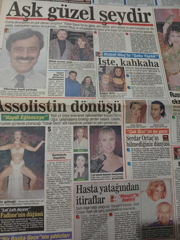 SABAH MELODİ GAZETESİ VE SABAH TELERAMA GAZETESİ KADINLARA ÖZEL - 16 Aralık 1994 -Karikatürler-Walt Disney/Boncuk-Mort Walker-Dick Browne/Bizim Aile-Tom Armstrong/Marvin-Graham Allen-John Dodd/Kral Kedi-Süleyman Turan/Dön Artık-Astroloji-Bülent Kısa-Klinik-Meltem Pusat-Telerama Programı-Sabah Filmleri-Öğlen Filmleri- akşam Filmleri- Nurseli İdiz- Halil ergün-füsun demirel-meltem cumbul-ümit Elçi- Cem özer- Esin maraşlıoğlu-cemsever- erdoğan sevgin-ali Öztürk- Ilgaz Dağları- meltem Pusat- Ender Saraç- rohat Mengi- Semra su-meral Mansuroğlu- ibrahim Tatlıses- murat Çobanoğlu- mahsuni Şerif- Sadri alışık-çolpan İlhan- özlem savaş-nil Burak- Serdar Ortaç- Lale Dilligil- nalan Altınörs- şevket Altuğ- osman sınav-hıncal Uluç- merve İldeniz- Arzu ece-şevket altuğ-selin aktan-mehmet Ali erbil-orhan gencebay-erol evgin-tuna serim-fatma girik-kim novak- faruk turgut-sevtap Parman- hazım körmükçü- adlı eser, Kitap > Süreli Yayınlar > Gazeteler > Türkiye > Genel > Günlük kategorisinde İkinci El olarak satıştadır.