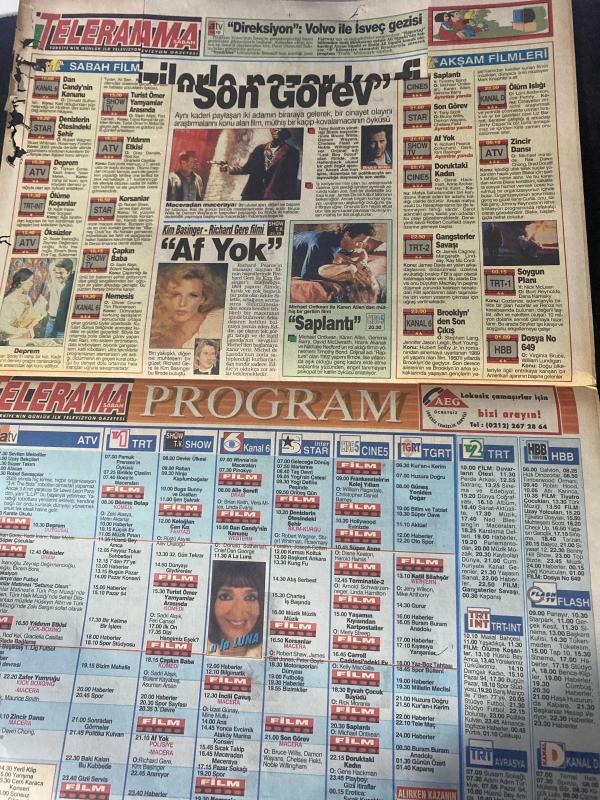 SABAH MELODİ GAZETESİ VE SABAH TELERAMA GAZETESİ KADINLARA ÖZEL - 16 Ekim 1994 -Karikatürler-Walt Disney/Boncuk-Mort Walker-Dick Browne/Bizim Aile-Tom Armstrong/Marvin-Graham Allen-John Dodd/Kral Kedi-Süleyman Turan/Dön Artık-Astroloji-Bülent Kısa-Klinik-Meltem Pusat-Telerama Programı-Sabah Filmleri-Öğlen Filmleri-Akşam Filmleri-Erdoğan Sevgin-Ali Öztük-Porlan porselen-Huysuz Virjin-Gökben-Seher Dilovan-Emmune-Levent Özdilek-Aranıyor-Bizimkiler-Cem Molvan-Feyyaz Tokar-Kadınlar Matinesi-Sefamız Olsun-Seyfi dursunoğlu-Murat Kürüz-İzzet Öz-Otobüs-Kervan Çeyiz-A La Luna-Arif Erkuş-Yunus Bülbül-Bizimkiler-Sonradan Görmeler-Ned Blessing-Hülya Avşar-Ajda Pekkan-Sibel Tüzün-Ayşegül Aldinç-Kim Basinger-Richard Gere-Türkan Şoray-Bruce Willis-Sezer İnanoğlu-Zeynep Değirmencioğlu-Af Yok-Michael Ontkean-Karen Allen-Tony Scoot adlı eser, Kitap > Süreli Yayınlar > Gazeteler > Türkiye > Genel > Günlük kategorisinde İkinci El olarak satıştadır.