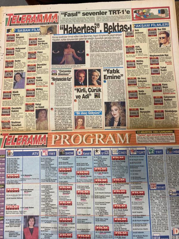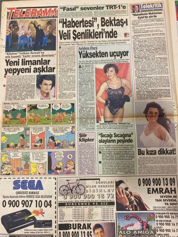SABAH MELODİ GAZETESİ VE SABAH TELERAMA GAZETESİ KADINLARA ÖZEL - 17 Ağustos 1994 -Karikatürler-Walt Disney/Boncuk-Mort Walker-Dick Browne/Bizim Aile-Tom Armstrong/Marvin-Graham Allen-John Dodd/Kral Kedi-Süleyman Turan/Dön Artık-Astroloji-Bülent Kısa-Klinik-Meltem Pusat-Telerama Programı-Sabah Filmleri-Öğlen Filmleri-Akşam Filmleri-Erdoğan Sevgin-Ali Öztük-Mahallenin Muhtarları-Cihat Tamer-Yalçın Gülhan-Filiz Taçbaş-Leman Çıdamlı-Sevil Üstekin-Nejat Uygur-Müzik Show-Özlem Esra Güven-Arzu Ece-Deniz Arcak-Hakan Peker-Oryantel Melissa-Babetto-Burak Kut-Tayfun Talipoğlu-Hacı Bektaşi veli şenlikleri-Mehmet Ali yula-Hamdi Orhan-Müge Oruçkaptan-Mine koşan-Emel Müftüoğlu-Miğferine Çiçek eken asker-Sarda bisiklet-Sega-Aslıhan Öncü-Volkan konak-Emrah-Bizimkiler-Müjdat gezen-Perran kutman-Necla nazır-Zuhal Olcay-Banu Alkan-Vahşi ve güzel-Atilla Sara-Buz gibi-Habertesi-Ayşenur arslan-Yatık Emine-Steve Martin-Michael Caine-Britt Ekland-Lana Wood-Vanilla Ice adlı eser, Kitap > Süreli Yayınlar > Gazeteler > Türkiye > Genel > Günlük kategorisinde İkinci El olarak satıştadır.