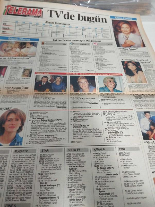 SABAH MELODİ GAZETESİ VE SABAH TELERAMA GAZETESİ KADINLARA ÖZEL - 18 Haziran 1996 -Karikatürler-Walt Disney/Boncuk-Mort Walker-Dick Browne/Bizim Aile-Tom Armstrong/Marvin-Graham Allen-John Dodd/Kral Kedi-Süleyman Turan/Dön Artık-Astroloji-Bülent Kısa-Klinik-Meltem Pusat-Telerama Programı-Sabah Filmleri-Öğlen Filmleri-Akşam Filmleri-Erdoğan Sevgin-takıntılar-asya-gelin-cemil ipekçi-elif ergu-Bora öztoprak-tüy dökücü krem-brad pitt-seymour diamond-seçil-Ali öztürk-unutursun gönlüm-cinayet komedisi-bülent ecevit-mehmet Ali birand-32 gün-ankara'da gündem-orhan uğuroğlu-türkiye-hırvatistan-temel ile fadime-mahallenin muhtarları-sezen aksu-imran aykut-fırtınalar-ebru gündeş-engin civan-adliye koridorları-türk sineması-yalan rüzgarı-gece haberleri-avrupa futbol şampiyonası-gezelim görelim-belalı anne-hülya koçyiğit-ibrahim tatlıses-emel sayın-ünsal emre-ediz hun-pelikan dosyası-yerel haber-çarkıfelek-osman balcıgil-ufo gerçeği-bir Demet tiyatro-zamanda yolculuk-ekonominin içinde adlı eser, Kitap > Süreli Yayınlar > Gazeteler > Türkiye > Genel > Günlük kategorisinde İkinci El olarak satıştadır.