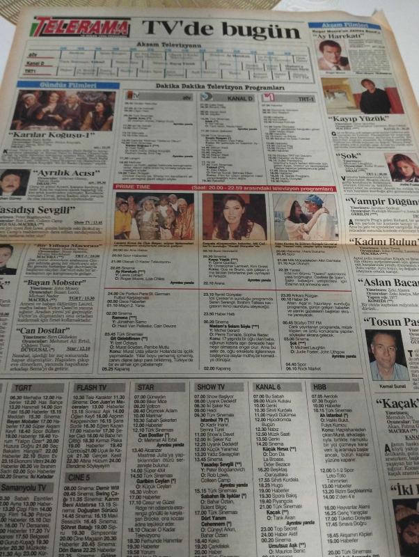 SABAH MELODİ GAZETESİ VE SABAH TELERAMA GAZETESİ KADINLARA ÖZEL - 18 Nisan 1996 -Karikatürler-Walt Disney/Boncuk-Mort Walker-Dick Browne/Bizim Aile-Tom Armstrong/Marvin-Graham Allen-John Dodd/Kral Kedi-Süleyman Turan/Dön Artık-Astroloji-Bülent Kısa-Klinik-Meltem Pusat-Telerama Programı-Sabah Filmleri-Öğlen Filmleri-Akşam Filmleri-Erdoğan Sevgin-Tansu çiller-abdulkadir ateş-erkekler-chp-demet ışık- Çiğdem tunç-çıplak kral masalı-levent kırca-oya başar-Feray göknel-ergün göknar-fatih altaylı-nurdan erbuğ-Uğur dündar-arena-ssk-deli dana-zeki müren-yasemin bozkurt-ayrılık acısı-gökhan güney-pakize suda-yasa dışı sevgili-adak-tarık akan-necla nazır-mehmet Ali erbil-çiğdem tunç-can dostlar-aslan bacanak-zeki alasya-metin akpınar-kemal sunal-şener şen-ayşen gruda-tosun paşa-yalan rüzgarı-ay harekatı-renkli dünyalar-spor haberleri-açık oturum-haber hattı adlı eser, Kitap > Süreli Yayınlar > Gazeteler > Türkiye > Genel > Günlük kategorisinde İkinci El olarak satıştadır.