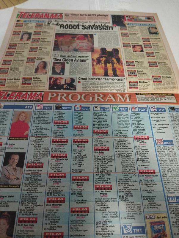 SABAH MELODİ GAZETESİ VE SABAH TELERAMA GAZETESİ KADINLARA ÖZEL - 18 Temmuz1994 -Uzlaşma filmi-Karikatürler-Walt Disney/Boncuk-Mort Walker-Dick Browne/Bizim Aile-Tom Armstrong/Marvin-Graham Allen-John Dodd/Kral Kedi-Süleyman Turan/Dön Artık-Astroloji-Bülent Kısa-Klinik-Meltem Pusat-Telerama Programı-Sabah Filmleri-Öğlen Filmleri-Akşam Filmleri-Erdoğan Sevgin-Levent kırca-aşkın Nur yengi-konser-bostancı salih-emel sayın-tarkan-levent usta-arnold-hastane-doktor salih-zeki alasya-metin akpınar-atay sözer-ali erdoğan-sururi bey-tarkan-ipek gümüşoğlu-Levent yüksel-mavi boncuk-aşka davet-samim değer-savaş karakaş-Kadir çöpdemir-Gülşen abi-kadın-onur savaşı-mahallenin muhtarları-alem-tarkan-hisar-sezen aksu-ağustos-burak-gönül abla-tiyatro-fikret-etek-uzay-böcek-meltem pusat-minik serçe-tiyatro-çingene-güneri civaoğlu-emel sayın-nurhan damcıoğlu-murat soydan-fatma karanfil-müslüm gürses-ilyas Salman-Sami güçlü-perihan savaş-ülkü erakalın-cüneyt arkın adlı eser, Kitap > Süreli Yayınlar > Gazeteler > Türkiye > Genel > Günlük kategorisinde İkinci El olarak satıştadır.