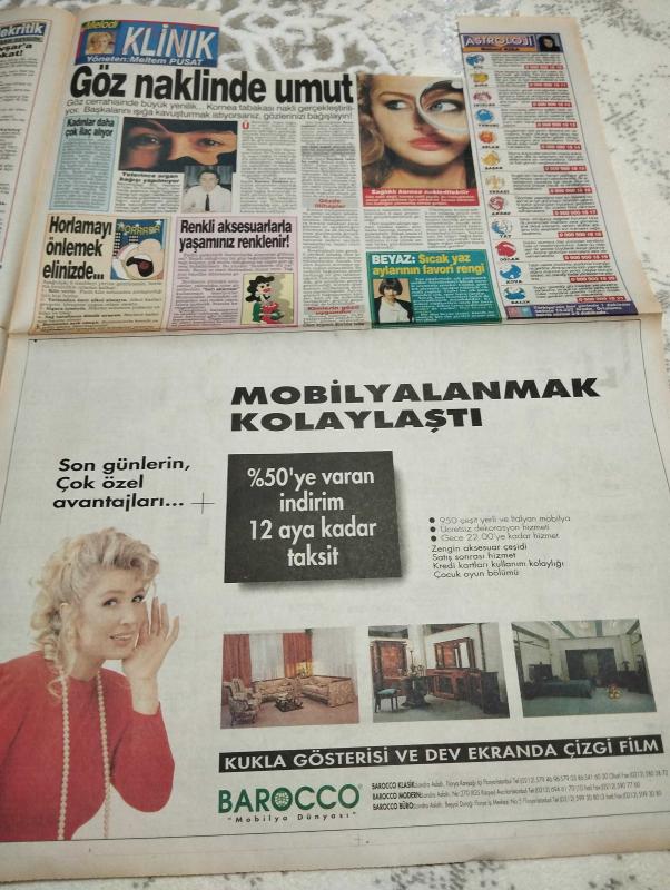 SABAH MELODİ GAZETESİ VE SABAH TELERAMA GAZETESİ KADINLARA ÖZEL - 2 Nisan 1994 -Karikatürler-Walt Disney/Boncuk-Mort Walker-Dick Browne/Bizim Aile-Tom Armstrong/Marvin-Graham Allen-John Dodd/Kral Kedi-Süleyman Turan/Dön Artık-Astroloji-Bülent Kısa-Klinik-Meltem Pusat-Telerama Programı-Sabah Filmleri-Öğlen Filmleri-Akşam Filmleri-ErdoğanSevgin- Seçil heper-devran çağlar-deniz arcak-altın kızlar- Aslıhan Öncü- Ayşe tunalı-özcan Deniz- Pelinsu pir-nergis Arı- Devran Çağlar- Hababam sınıfı-deniz Arcak- Mehmet Bozkuş- eliminatör- Mehtap Altınok-drima- Kont Drakula- Alo bilgi-osman Yağmurdereli- Rıfat Ilgaz- Münir Özkul- Hülya Avşar- Ertürk yönden-elçin temel-şebnem Savaşçı-barocco- Doktor Turhan Soylu- Müjde ar-kadir inanır- Ali Şen- Renan fosforluoğlu- Nazmi Özer-enrico oldoini- Bruce Lee- Kartal tibet-tanju Gürsu- Felekten Bir Gece programı- trt-bingo adlı eser, Kitap > Süreli Yayınlar > Gazeteler > Türkiye > Genel > Günlük kategorisinde İkinci El olarak satıştadır.