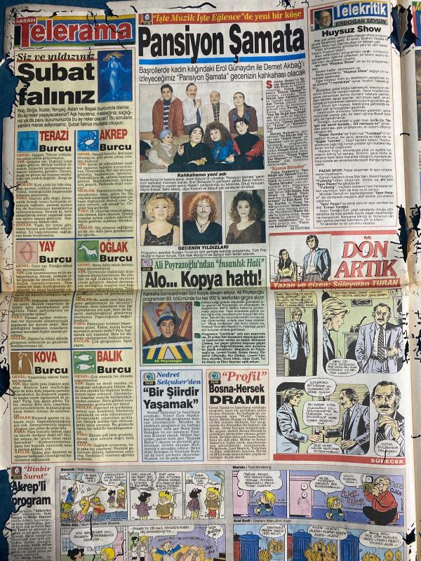 SABAH MELODİ GAZETESİ VE SABAH TELERAMA GAZETESİ KADINLARA ÖZEL - 2 Şubat 1994 -Karikatürler-Walt Disney/Boncuk-Mort Walker-Dick Browne/Bizim Aile-Tom Armstrong/Marvin-Graham Allen-John Dodd/Kral Kedi-Süleyman Turan/Dön Artık-Astroloji-Bülent Kısa-Klinik-Meltem Pusat-Telerama Programı-Sabah Filmleri-Öğlen Filmleri-Akşam Filmleri-Erdoğan sevgin--huysuz Virjin-seren Serengil-Özcan Deniz-Bülent Şar—-Ebru Cündübeyoğlu--müzeyyen uçkun--İzzet Öz—Aylin Livaneli-Oğuzhan Tercan-Müjdat gezen-perran kutman-Cansu Akbel-veli Çelik-nuray Yaşar-Serpil barlas—Haydar dümen-Hülya Avşar-berke hürcan—veli Çelik--Nilgün-Zerrin arbaş-Erol Günaydın-Demet akbağ-pansiyon şamata—Ali poyrazoğlu-Yusuf Ziya alçakakar-Pratica dergisi-Canan Sara çizgi Fikret Türkan Cerrahpaşa tıp fakültesi fizik tedavi anabilim dalı başkanı Profesör Dr. Fikret Tüzün-Pembe Mutlu--aile konseyi-vazgeç gönlüm-Orhan Gencebay--canan Perwer-Yalçın gülhan--Abdurrahman Palay-Osman Seden-Jason Robards adlı eser, Kitap > Süreli Yayınlar > Gazeteler > Türkiye > Genel > Günlük kategorisinde İkinci El olarak satıştadır.