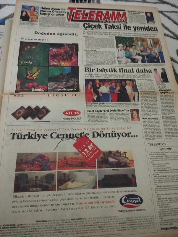 SABAH MELODİ GAZETESİ VE SABAH TELERAMA GAZETESİ KADINLARA ÖZEL - 21 Eylül 1996 -Karikatürler-Walt Disney/Boncuk-Mort Walker-Dick Browne/Bizim Aile-Tom Armstrong/Marvin-Graham Allen-John Dodd/Kral Kedi-Süleyman Turan/Dön Artık-Astroloji-Bülent Kısa-Klinik-Meltem Pusat-Telerama Programı-Sabah Filmleri-Öğlen Filmleri-Akşam Filmleri-Erdoğan Sevgin-Seda Kaya güler-women club-gökhan tepe-duygusal-erotik-ışılay saygın-tekinel-bayıldım-tulu çizgen-yasa-güzellik-banvit-menopoz-tina turner-rock-Hülya avşar-nazan öncel-çiçek taksi-mustafa sandal-hisar konseri-korcan karar-nurhayat kavrak-emel sayın-erol evgin-fatih ürek-burçin orhon-cennet Sadri alışık-feri cansel-yusuf Sezgin çıplak silah-fakir milyoner-ilyas salman-bahar öztan-ince ince yasemince-haftanın yıldızı-haber saati-mavi ay-haber hafta sonu-odadaki sesler-cinayet hayalleri-çılgın tatil-gamze pınar-ilyas Salman adlı eser, Kitap > Süreli Yayınlar > Gazeteler > Türkiye > Genel > Günlük kategorisinde İkinci El olarak satıştadır.