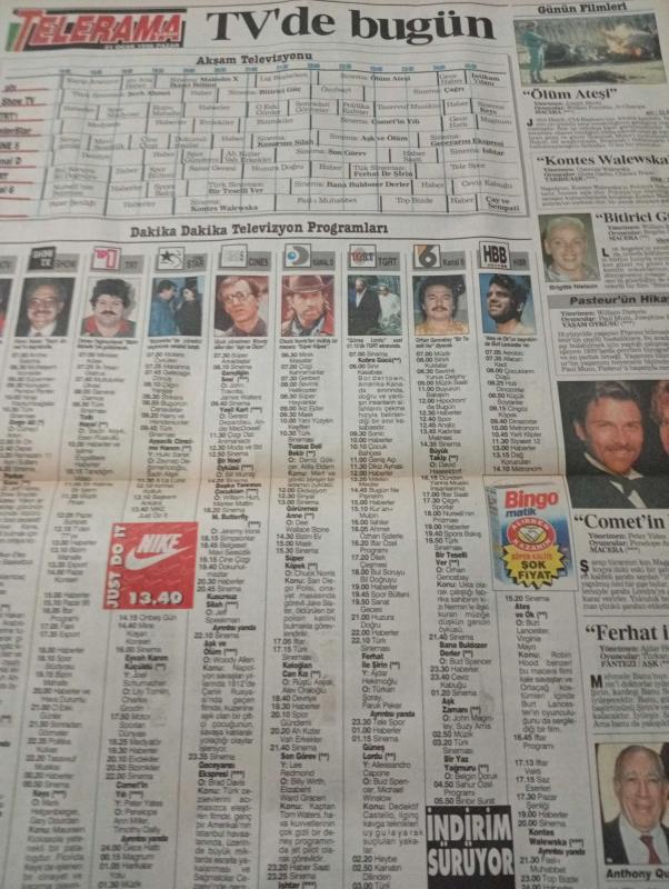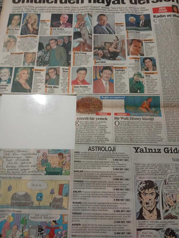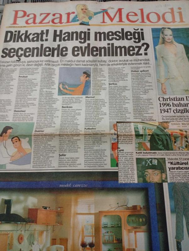 SABAH MELODİ GAZETESİ VE SABAH TELERAMA GAZETESİ KADINLARA ÖZEL -21 Ocak 1996 -Karikatürler-Walt Disney/Boncuk-Mort Walker-Dick Browne/Bizim Aile-Tom Armstrong/Marvin-Graham Allen-John Dodd/Kral Kedi-Süleyman Turan/Dön Artık-Astroloji-Bülent Kısa-Klinik-Meltem Pusat-Telerama Programı-Sabah Filmleri-Öğlen Filmleri-Akşam Filmleri- Osman yağmurdereli-fikret hakan-orhan Boran-Anthony Quinn-Warren beaty-Peter yates-Brigitte Nelson- Christian Dior- Seda Güler- Aysel güler-mustafa Topaloğlu- fatma girik- Güneri Civaoğlu- Selahattin Duman- johnny Depp- Seda Güler- Metin güngör-erdoğan sevgin-ferdi Tayfur- nevran şerefli-murat coşkuner-erol kart deseci-zuhal yinga-şebnem Özyılmaz- atilla olgaç-nurhan Damcıoğlu- ayşenur Yazıcı- Ali öztürk-levent ülek, Dinç Bilgin tarafından kaleme alınmıştır. SABAH MELODİ GAZETESİ VE SABAH TELERAMA GAZETESİ KADINLARA ÖZEL -21 Ocak 1996 -Karikatürler-Walt Disney/Boncuk-Mort Walker-Dick Browne/Bizim Aile-Tom Armstrong/Marvin-Graham Allen-John Dodd/Kral Kedi-Süleyman Turan/Dön Artık-Astroloji-Bülent Kısa-Klinik-Meltem Pusat-Telerama Programı-Sabah Filmleri-Öğlen Filmleri-Akşam Filmleri- Osman yağmurdereli-fikret hakan-orhan Boran-Anthony Quinn-Warren beaty-Peter yates-Brigitte Nelson- Christian Dior- Seda Güler- Aysel güler-mustafa Topaloğlu- fatma girik- Güneri Civaoğlu- Selahattin Duman- johnny Depp- Seda Güler- Metin güngör-erdoğan sevgin-ferdi Tayfur- nevran şerefli-murat coşkuner-erol kart deseci-zuhal yinga-şebnem Özyılmaz- atilla olgaç-nurhan Damcıoğlu- ayşenur Yazıcı- Ali öztürk-levent ülek adlı eser Türkçe dilindedir.