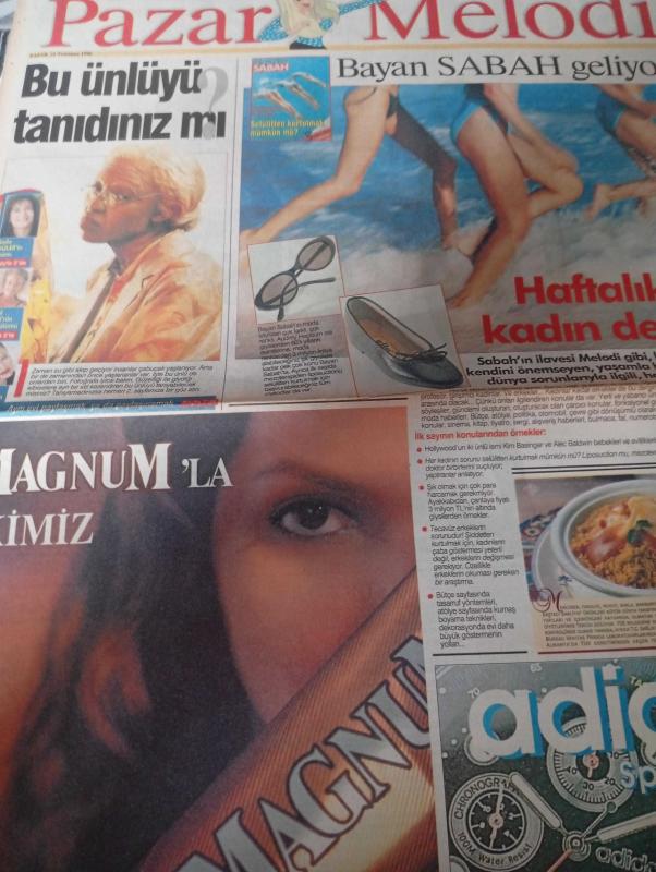 SABAH MELODİ GAZETESİ VE SABAH TELERAMA GAZETESİ KADINLARA ÖZEL -21 temmuz 1996 -Karikatürler-Walt Disney/Boncuk-Mort Walker-Dick Browne/Bizim Aile-Tom Armstrong/Marvin-Graham Allen-John Dodd/Kral Kedi-Süleyman Turan/Dön Artık-Astroloji-Bülent Kısa-Klinik-Meltem Pusat-Telerama Programı-Sabah Filmleri-Öğlen Filmleri-Akşam Filmleri- Zühre parsadan- seda Güler- Süleyman turan-hale pakcan- özlem Akalan- Sinan Hıncal- zühre parsadan- hakan şükür-esra her birlik- Emine Erdoğan- özdenörük- ihsan berkel-erdoğan sevgin-gülriz sururi-can Dündar- doğan Kılıç- funda Şirin kalk-ahmet Bilge- ali Öztürk- ahmet Bilge- Rıza Çalımbay- Müjde ar-kartal tibet-şener Şen- okusal pekmez oldu-ibrahim Tatlıses- Necla Nazır- Melih gülgen-osman sedam-bülent ersoy-mine mutlu-turgut Özatay, DİNÇ BİLGİN tarafından kaleme alınmıştır. SABAH MELODİ GAZETESİ VE SABAH TELERAMA GAZETESİ KADINLARA ÖZEL -21 temmuz 1996 -Karikatürler-Walt Disney/Boncuk-Mort Walker-Dick Browne/Bizim Aile-Tom Armstrong/Marvin-Graham Allen-John Dodd/Kral Kedi-Süleyman Turan/Dön Artık-Astroloji-Bülent Kısa-Klinik-Meltem Pusat-Telerama Programı-Sabah Filmleri-Öğlen Filmleri-Akşam Filmleri- Zühre parsadan- seda Güler- Süleyman turan-hale pakcan- özlem Akalan- Sinan Hıncal- zühre parsadan- hakan şükür-esra her birlik- Emine Erdoğan- özdenörük- ihsan berkel-erdoğan sevgin-gülriz sururi-can Dündar- doğan Kılıç- funda Şirin kalk-ahmet Bilge- ali Öztürk- ahmet Bilge- Rıza Çalımbay- Müjde ar-kartal tibet-şener Şen- okusal pekmez oldu-ibrahim Tatlıses- Necla Nazır- Melih gülgen-osman sedam-bülent ersoy-mine mutlu-turgut Özatay adlı eser Türkçe dilindedir. Eserin içeriğinde Türkçe dilinde bölümlere de yer verilmektedir.