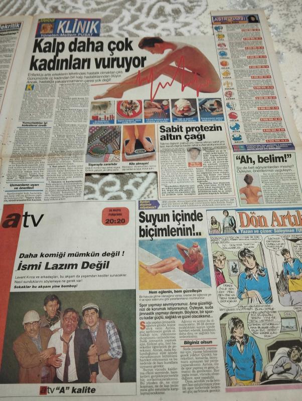 SABAH MELODİ GAZETESİ VE SABAH TELERAMA GAZETESİ KADINLARA ÖZEL - 26 Mayıs 1994 -Karikatürler-Walt Disney/Boncuk-Mort Walker-Dick Browne/Bizim Aile-Tom Armstrong/Marvin-Graham Allen-John Dodd/Kral Kedi-Süleyman Turan/Dön Artık-Astroloji-Bülent Kısa-Klinik-Meltem Pusat-Telerama Programı-Sabah Filmleri-Öğlen Filmleri-Akşam Filmleri-ErdoğanSevgin- Levent Kırca-marie antoinette- Şebnem dönmez-trt- Tansu çiller-nazan Şoray- Zeki Alasya- Yeşim Yavuz- Ebru kural- Naci Çelik Berksoy- Kadriye kenter-tutacağım arsalar-şükran Güngör- burak Kut- Erhan Ceylan- hakan Peker- emrah-sega-oyun hattı-alo bilgi-michelle pfeiffer- atv-levent Kırca- İzzet günay-hülya Koçyiğit- al Pacino- Altan karındaş-ali kırca-ismi lazım değil- bingo-trt adlı eser, Kitap > Süreli Yayınlar > Gazeteler > Türkiye > Genel > Günlük kategorisinde İkinci El olarak satıştadır.
