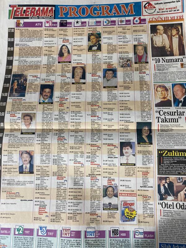 SABAH MELODİ GAZETESİ VE SABAH TELERAMA GAZETESİ KADINLARA ÖZEL - 28 Kasım 1994 -Karikatürler-Walt Disney/Boncuk-Mort Walker-Dick Browne/Bizim Aile-Tom Armstrong/Marvin-Graham Allen-John Dodd/Kral Kedi-Süleyman Turan/Dön Artık-Astroloji-Bülent Kısa-Klinik-Meltem Pusat-Telerama Programı-Sabah Filmleri-Öğlen Filmleri-Akşam Filmleri-Erdoğan Sevgin-esin maraşlıoğlu-Ayşe Sarıkaya-Sinan Çetin-Little Babies-Tefal-Passap-Yılmazer Holding-Sema Denker-Ümran Baradan-ebru kılıçoğlu-Intertoy-Müjde Ar-Şehnaz Tango-Yasemin bozkurt-fehmi Güneş-Ayşe Güneş-Haluk uzman-Müjdat gezen-Melda gür-bekir Aksoy-Reha muhtar-ateş hattı-kahkaha-Ali Öztürk-Leyla Tekül-Esin Moralıoğlu-muazzez Ersoy- Ali kırca-feridun karakaya-zülüm-otel odası-cesurlar takımı-gönül Yazar-Gökhan Güney- Cüneyt Arkın-Türkan Şoray—Sadri Alışık—Michael Douglas-Gene Hackman-Patrick Swayze-Ekrem Özdemir-Richard attenborough, DİNÇ BİLGİN tarafından kaleme alınmıştır. SABAH MELODİ GAZETESİ VE SABAH TELERAMA GAZETESİ KADINLARA ÖZEL - 28 Kasım 1994 -Karikatürler-Walt Disney/Boncuk-Mort Walker-Dick Browne/Bizim Aile-Tom Armstrong/Marvin-Graham Allen-John Dodd/Kral Kedi-Süleyman Turan/Dön Artık-Astroloji-Bülent Kısa-Klinik-Meltem Pusat-Telerama Programı-Sabah Filmleri-Öğlen Filmleri-Akşam Filmleri-Erdoğan Sevgin-esin maraşlıoğlu-Ayşe Sarıkaya-Sinan Çetin-Little Babies-Tefal-Passap-Yılmazer Holding-Sema Denker-Ümran Baradan-ebru kılıçoğlu-Intertoy-Müjde Ar-Şehnaz Tango-Yasemin bozkurt-fehmi Güneş-Ayşe Güneş-Haluk uzman-Müjdat gezen-Melda gür-bekir Aksoy-Reha muhtar-ateş hattı-kahkaha-Ali Öztürk-Leyla Tekül-Esin Moralıoğlu-muazzez Ersoy- Ali kırca-feridun karakaya-zülüm-otel odası-cesurlar takımı-gönül Yazar-Gökhan Güney- Cüneyt Arkın-Türkan Şoray—Sadri Alışık—Michael Douglas-Gene Hackman-Patrick Swayze-Ekrem Özdemir-Richard attenborough adlı eser Türkçe dilindedir.