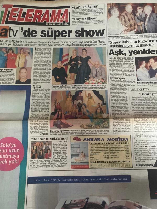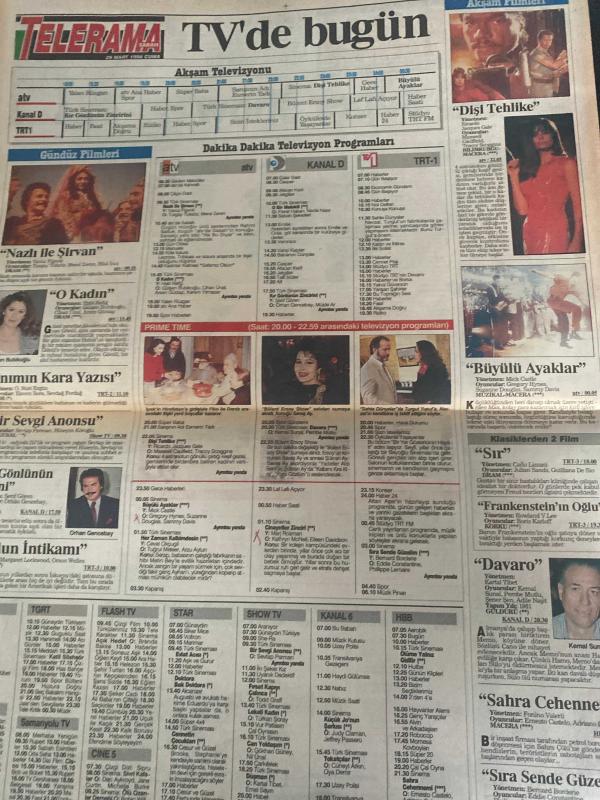SABAH MELODİ GAZETESİ VE SABAH TELERAMA GAZETESİ KADINLARA ÖZEL - 29 Mart 1996 -Karikatürler-Walt Disney/Boncuk-Mort Walker-Dick Browne/Bizim Aile-Tom Armstrong/Marvin-Graham Allen-John Dodd/Kral Kedi-Süleyman Turan/Dön Artık-Astroloji-Bülent Kısa-Klinik-Meltem Pusat-Telerama Programı-Sabah Filmleri-Öğlen Filmleri- Akşam Filmleri-Protex-Gülriz Sururi-Alı Kırca-Engin Cezzar-Hillary Clinton-Özlem Akalan-Yaşlılık el kitabı-Elif Ergu-banvit-Dilara Akıncı-Predictor-Solo peçete-Hülya Avşar-Nükhet Duru-Sibel Can-Sarışının adı Esmerin tadı-Süper Baba-Şevket Altuğ-İbo Show-Ankara Mobilya-İdaş-Erdoğan Sevgin-İzzet Altınmeşe-Suavi-Hazal-Orhan Gencebay-Kır gönlünün zincirini-Müjde Ar-Gülşen Bubikoğlu-Cihan Ünal-Arsen Gürzap-O Kadın-Nazlı ile Şirvan-Turgay Toksöz-Meral Zeren-Bilal İnci-Sahte Dünyalar-Turgut Yusuf-Bülent Ersoy Show-Savaş Ay-Dennis Hooper-Sahte Dünyalar adlı eser, Kitap > Süreli Yayınlar > Gazeteler > Türkiye > Genel > Günlük kategorisinde İkinci El olarak satıştadır.